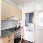 La cuina independent, completament equipada, ofereix un espai pràctic per al dia a dia i compta amb accés a un petit safareig orientat al pati interior.