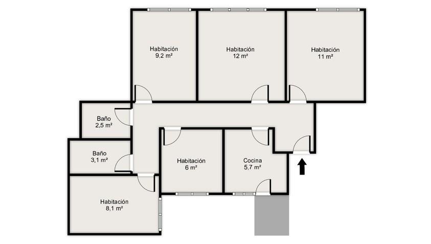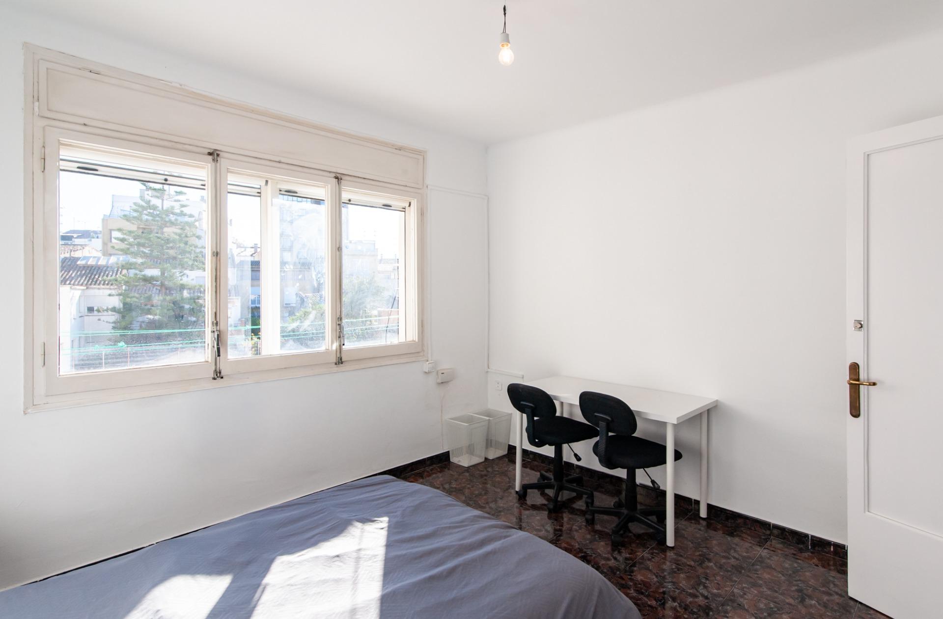 L'habitatge destaca per la seva amplitud, ja que disposa de cinc habitacions:~- Tres habitacions dobles, exteriors, lluminoses i amb grans finestres que aporten claredat i confort.~- Dues habitacions individuals, orientades al pati interior, perfectes com a dormitoris addicionals, espai d'estudi o zona de treball.