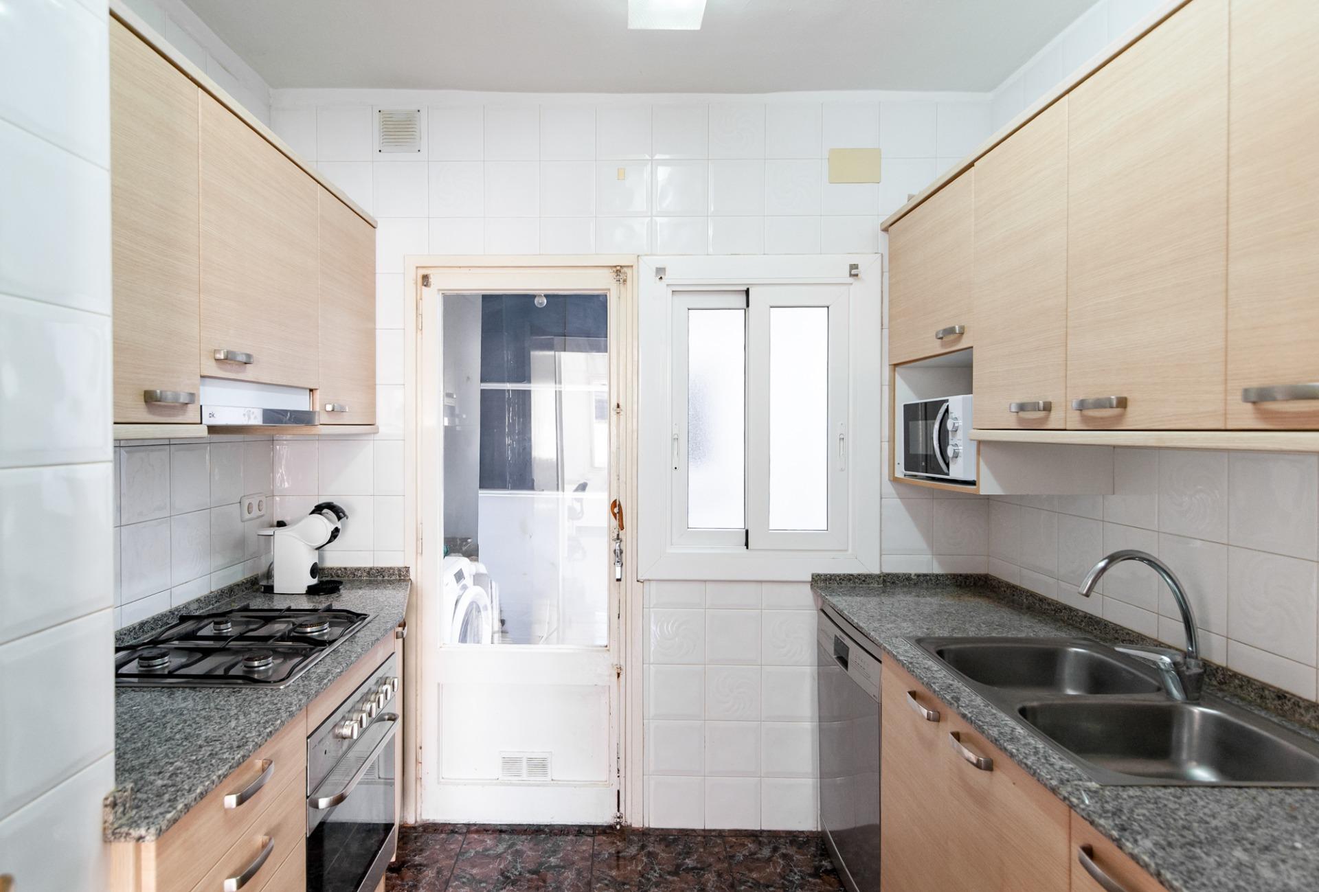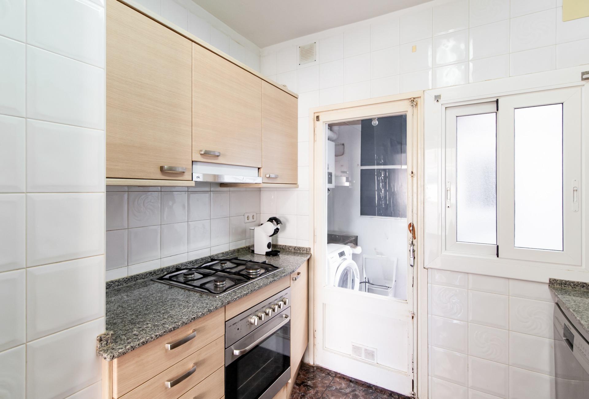 La cuina independent, completament equipada, ofereix un espai pràctic per al dia a dia i compta amb accés a un petit safareig orientat al pati interior.