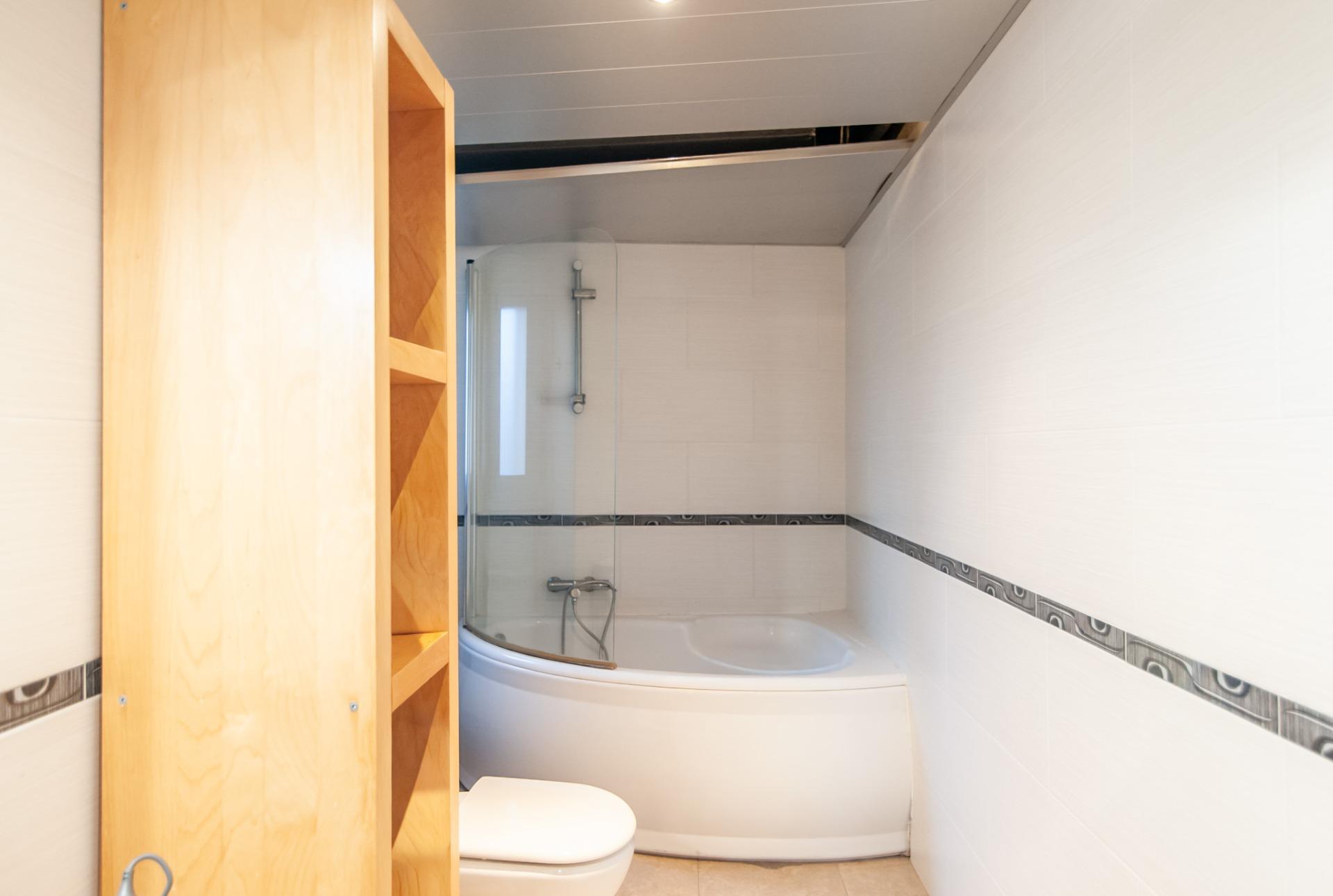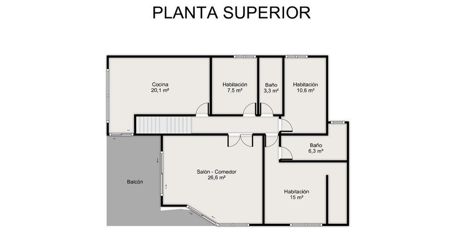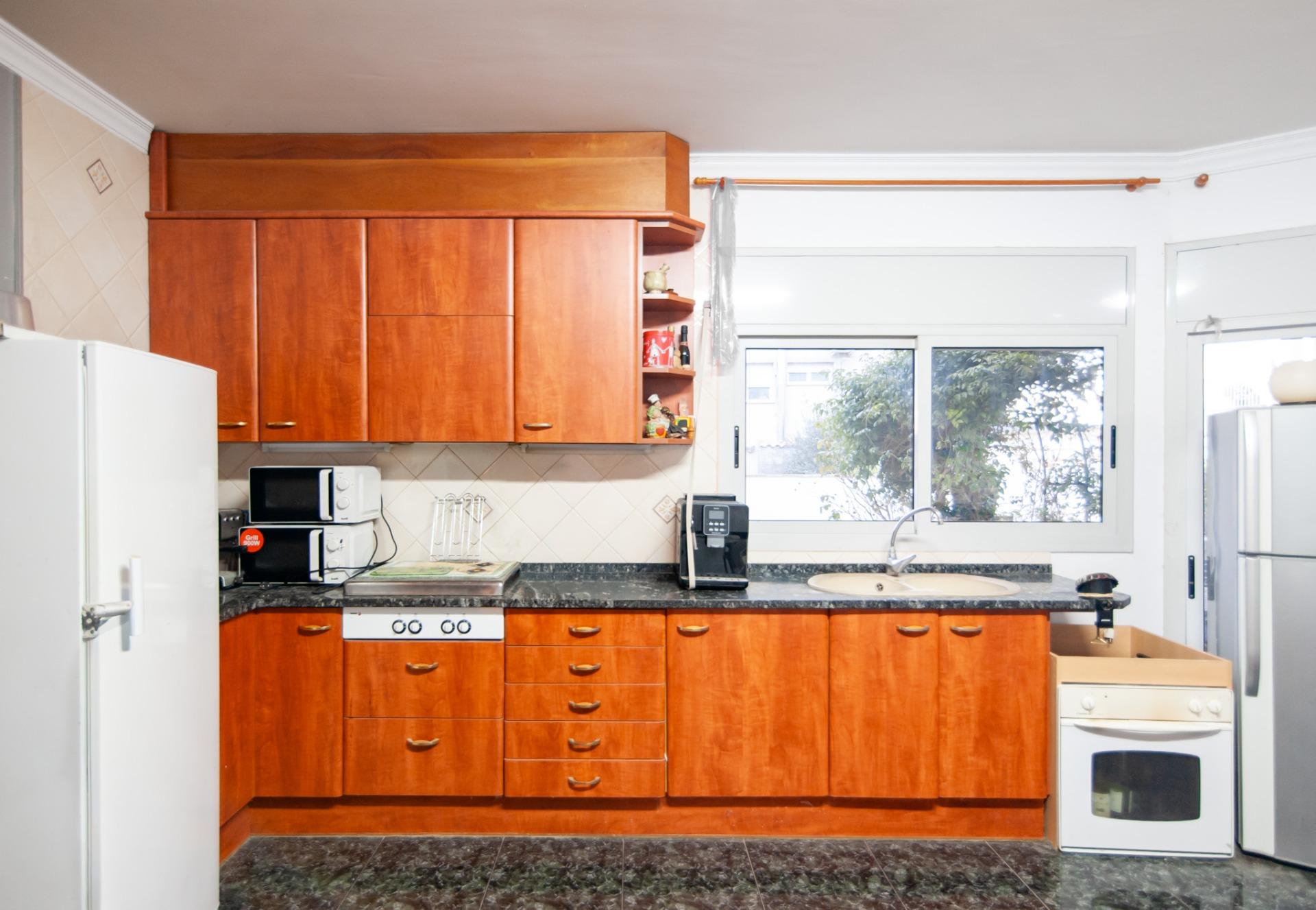 En la planta superior, a la que se accede mediante escalera interior, encontramos un segundo salón-comedor, amplio y muy luminoso gracias a los grandes ventanales que dan acceso a un balcón de generosas dimensiones. En esta planta también hay una cocina independiente, grande y totalmente equipada, con espacio para mesa de comedor y salida directa al balcón.