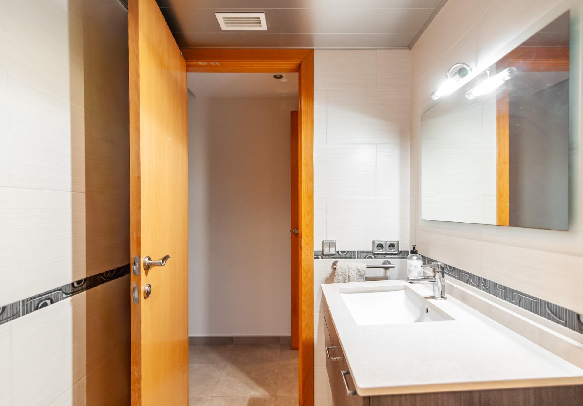 La zona de noche se completa con tres habitaciones: dos individuales exteriores y una habitación principal exterior en suite, que dispone de baño completo con bañera y vestidor. Además, esta planta cuenta con un segundo baño completo con ducha, que da servicio al resto de estancias.