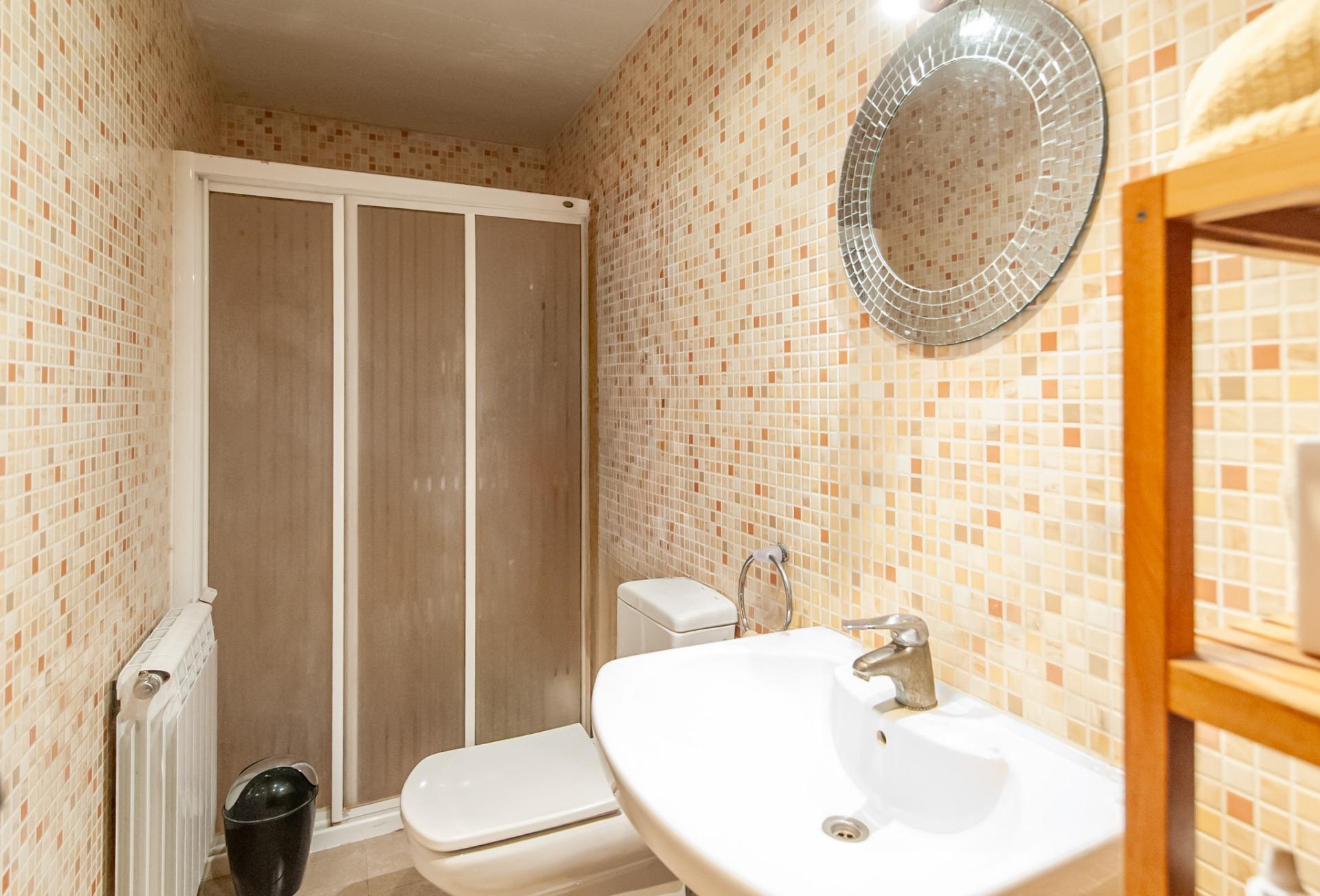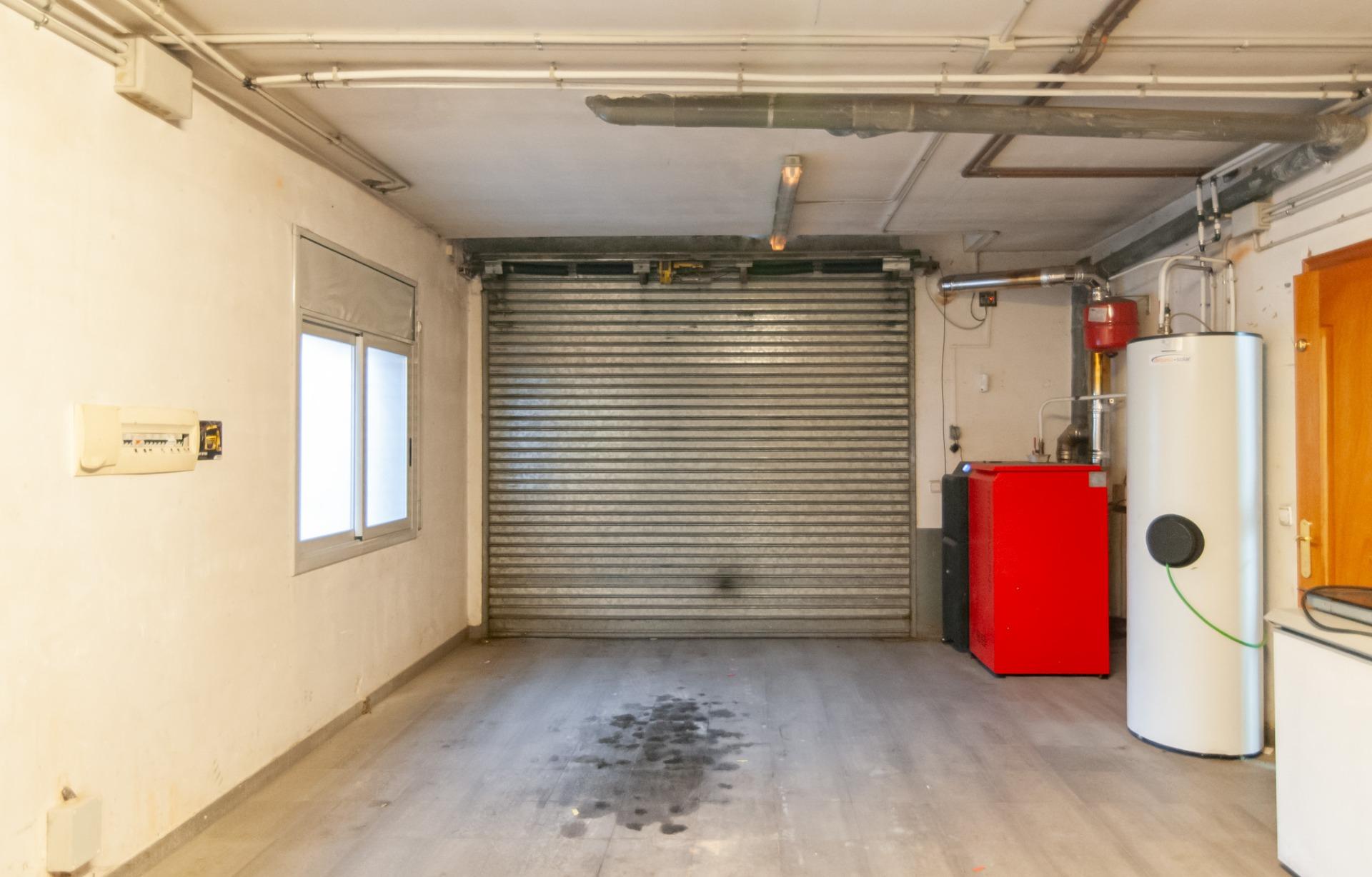 También en la planta baja se ubica un garaje amplio, con capacidad para aproximadamente dos vehículos y espacio adicional de almacenamiento, con el valor añadido de que conecta directamente con la vivienda desde el interior.