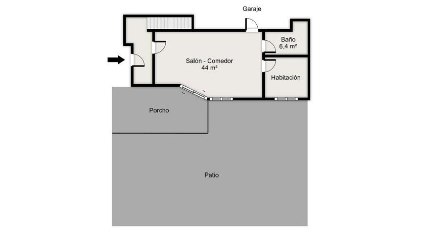 En la planta baja encontramos un espacio diáfano de salón-comedor-cocina con chimenea, amplio y funcional, ideal como zona de día principal. En esta misma planta se dispone de un baño completo con ducha y de una habitación individual, perfecta como despacho, habitación auxiliar o espacio polivalente.~Desde esta planta se accede directamente a la zona de terraza y patio de la vivienda, de grandes dimensiones y con muchas posibilidades, ya sea como zona exterior familiar, espacio ajardinado o área de ocio.