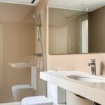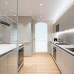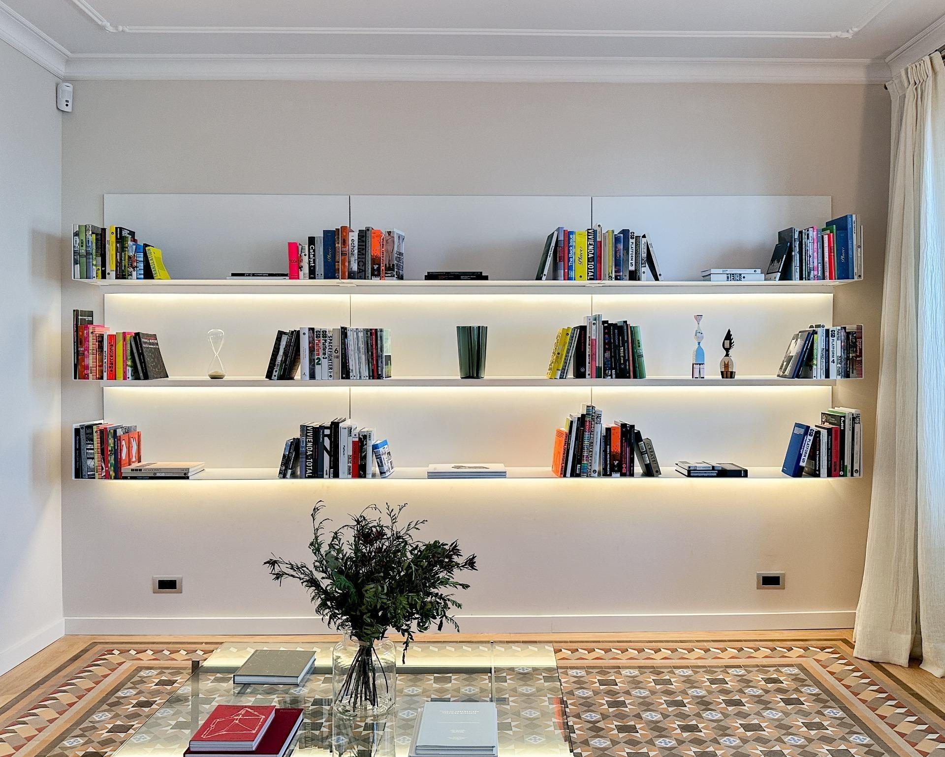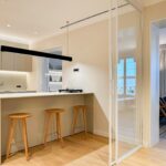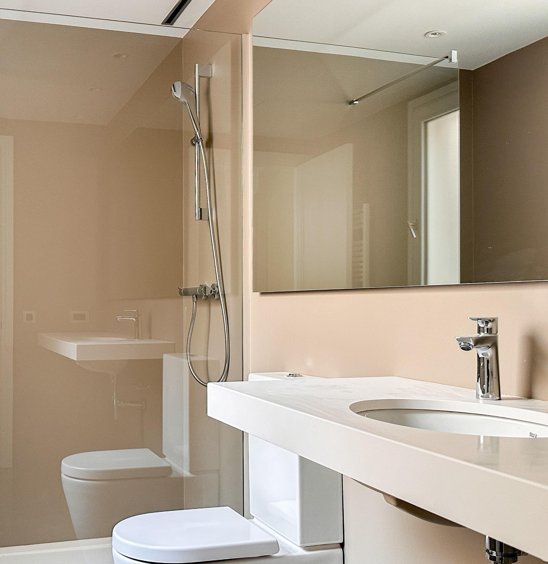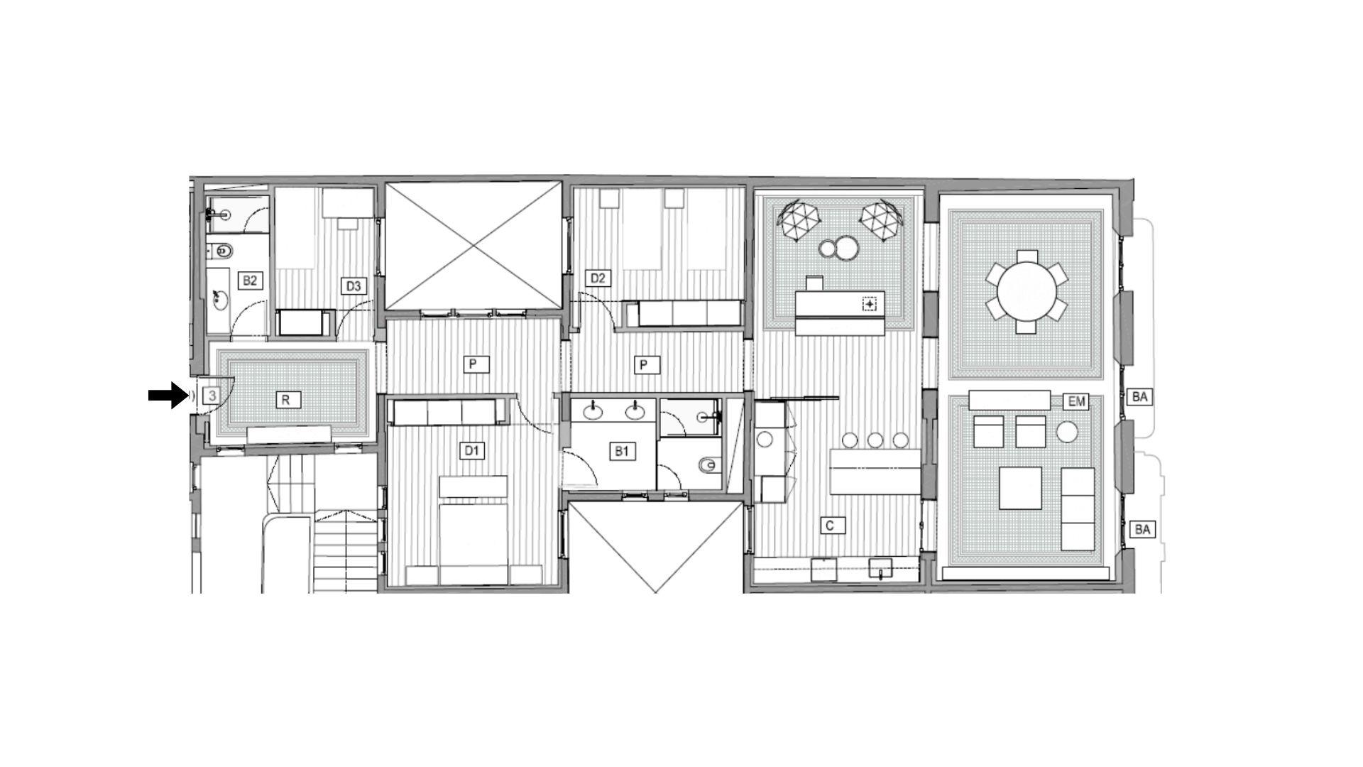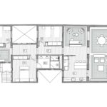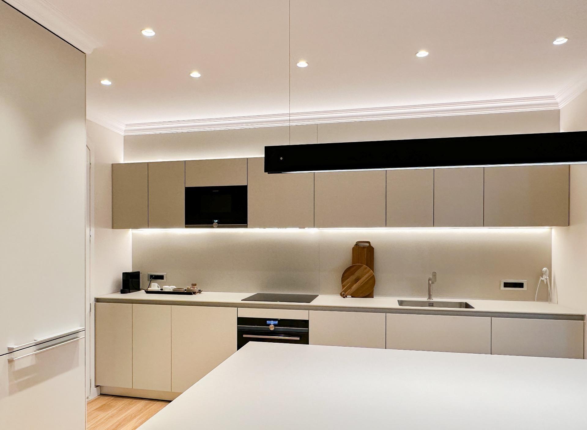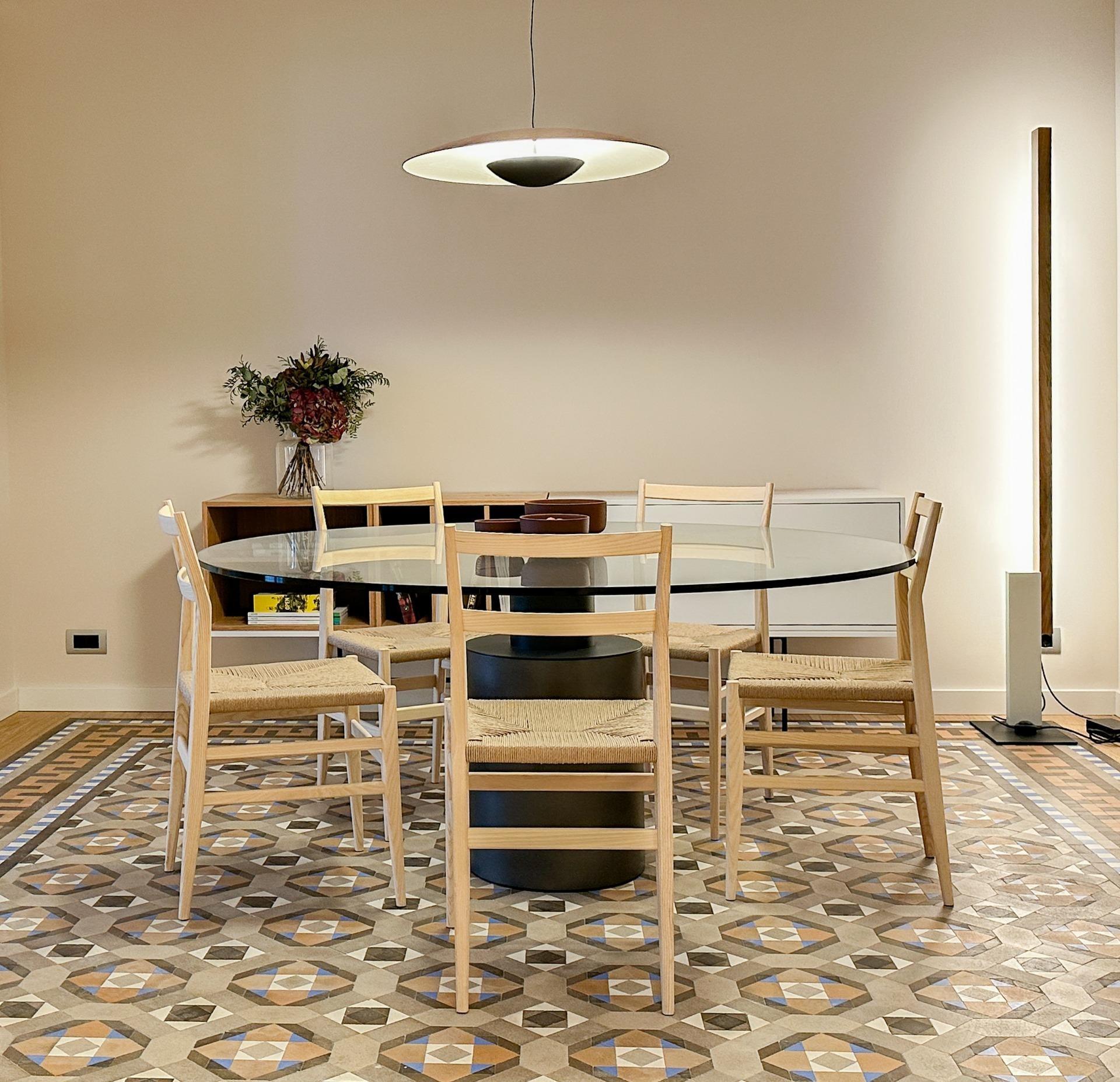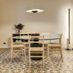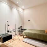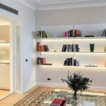 El proyecto pone en valor los elementos originales del edificio, como el suelo restaurado con esmero, que aporta carácter y autenticidad al conjunto. A ello se suma una cuidada selección de acabados de alta calidad: carpinterías exteriores con alto aislamiento térmico y acústico, griferías de diseño, climatización por conductos y un interiorismo elegante y atemporal.