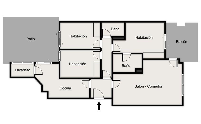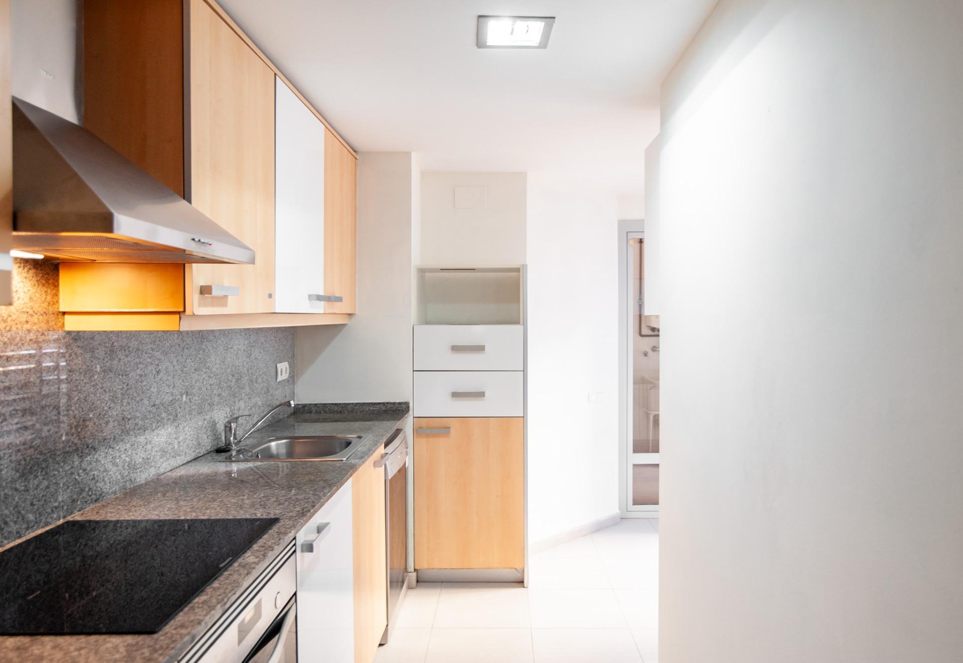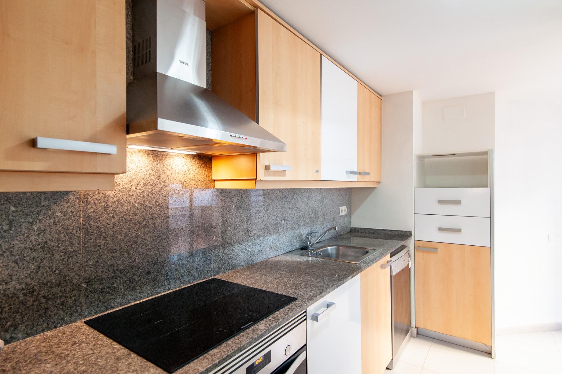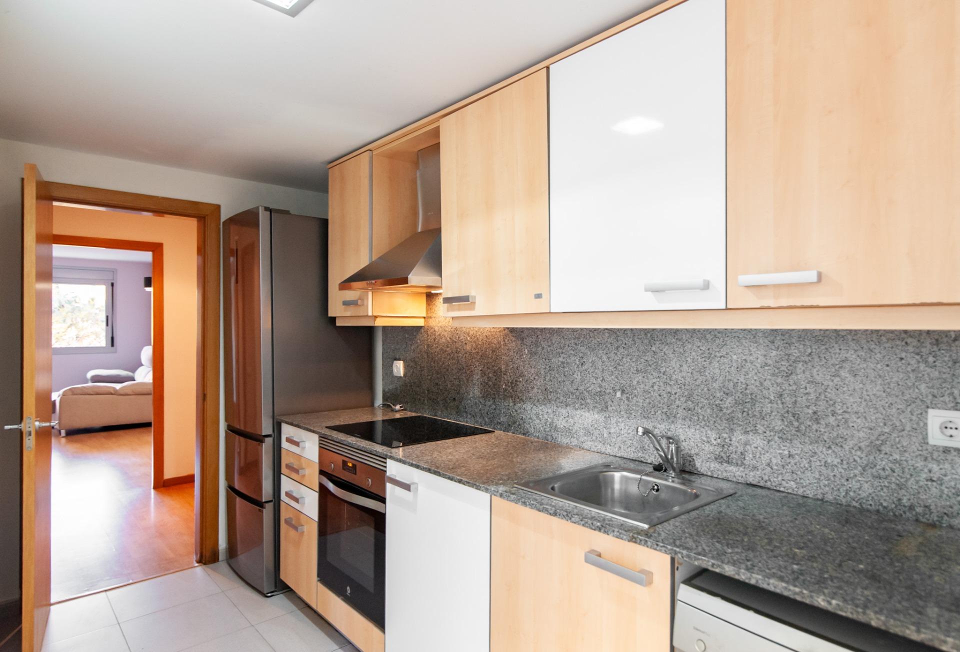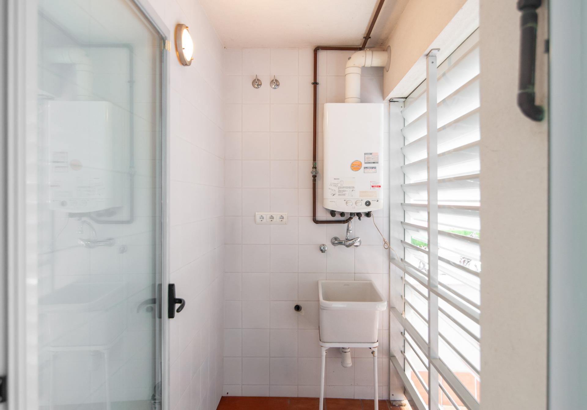 La cocina independiente, totalmente equipada, tiene acceso directo a este mismo patio, aportando funcionalidad y ventilación natural. Desde la cocina se accede también a un lavadero, muy práctico para el día a día.