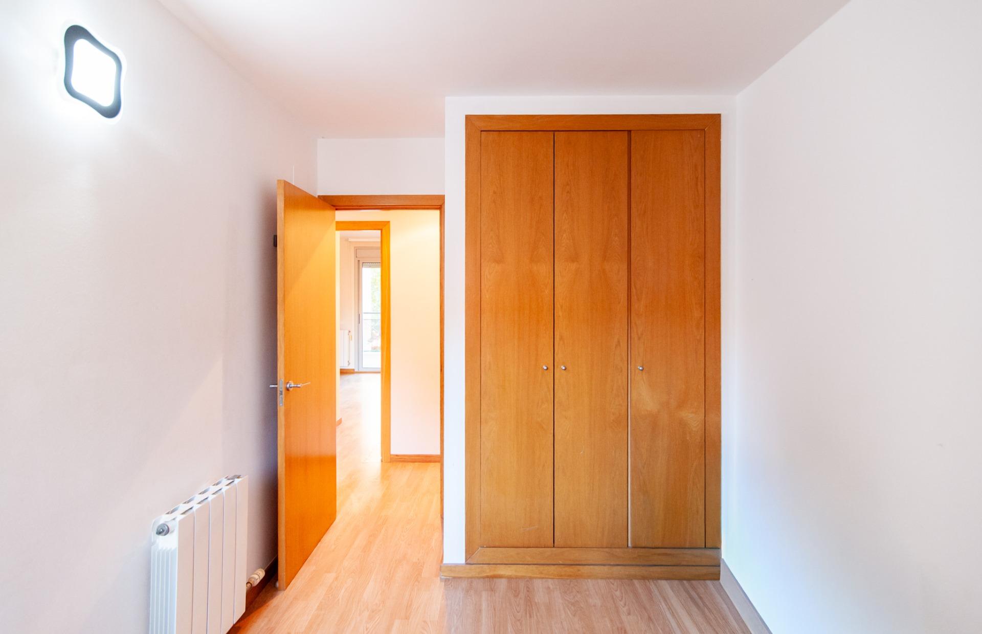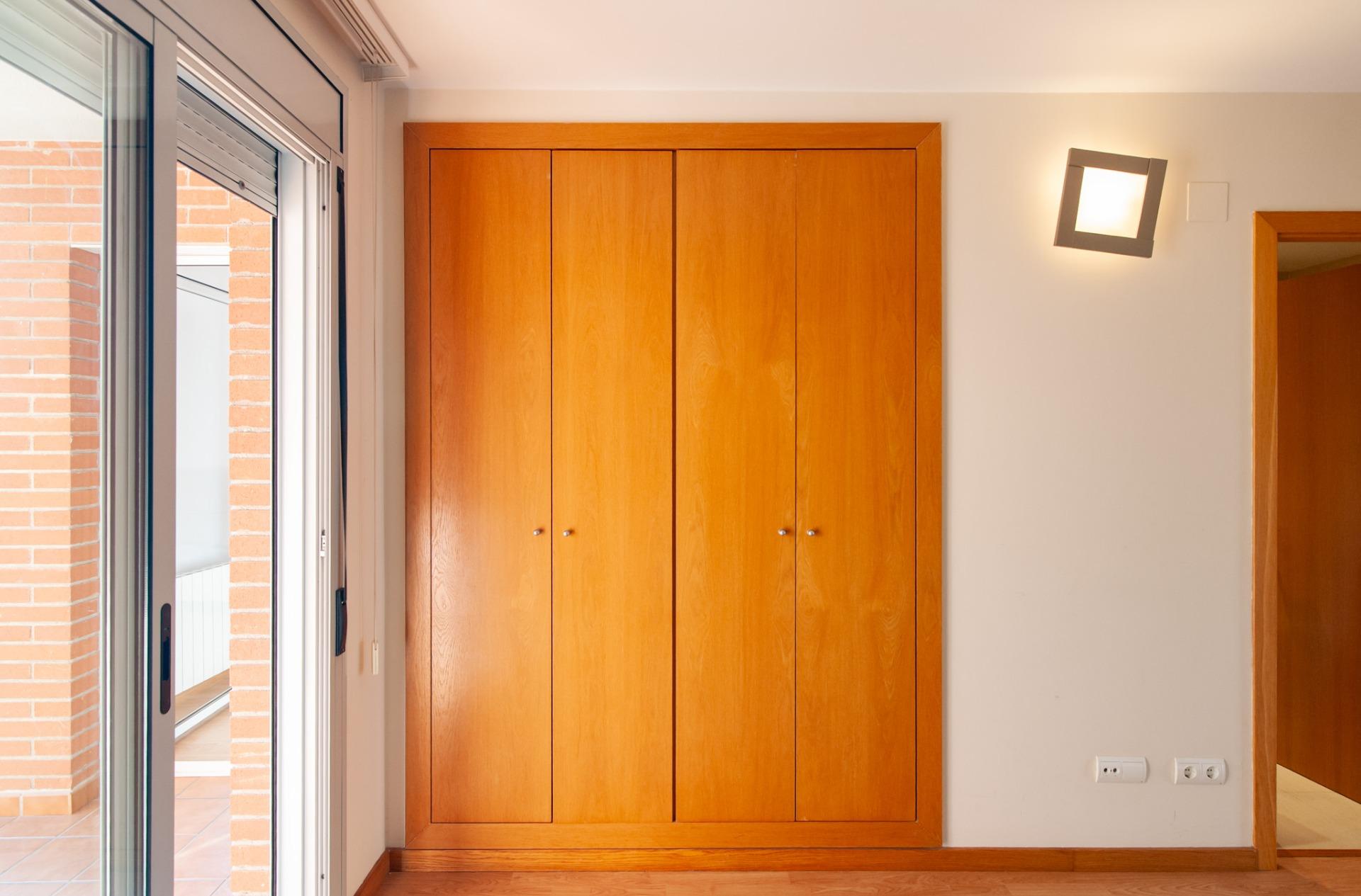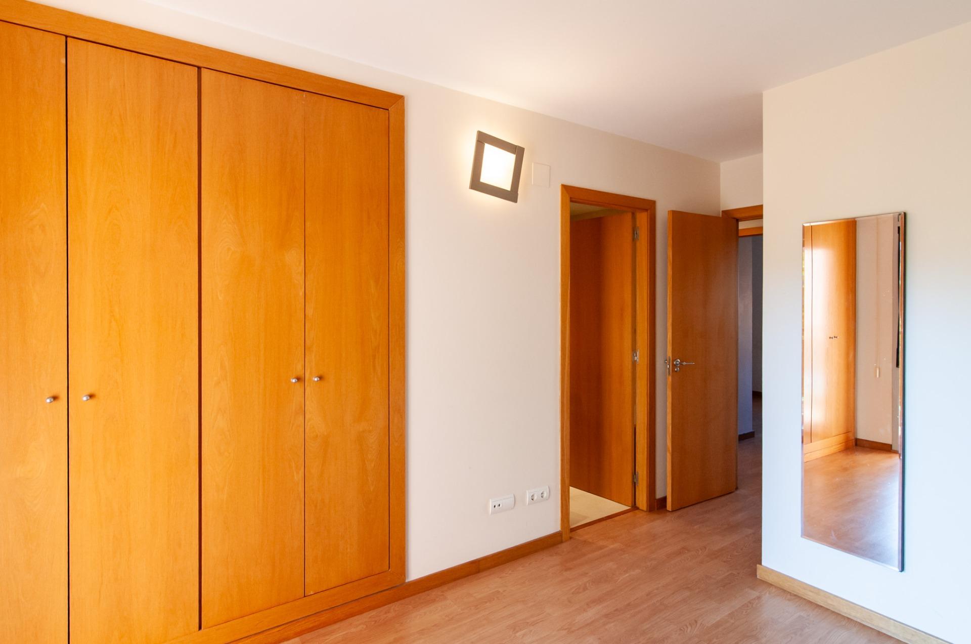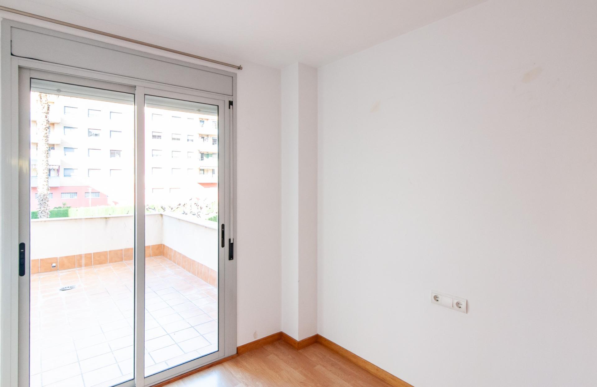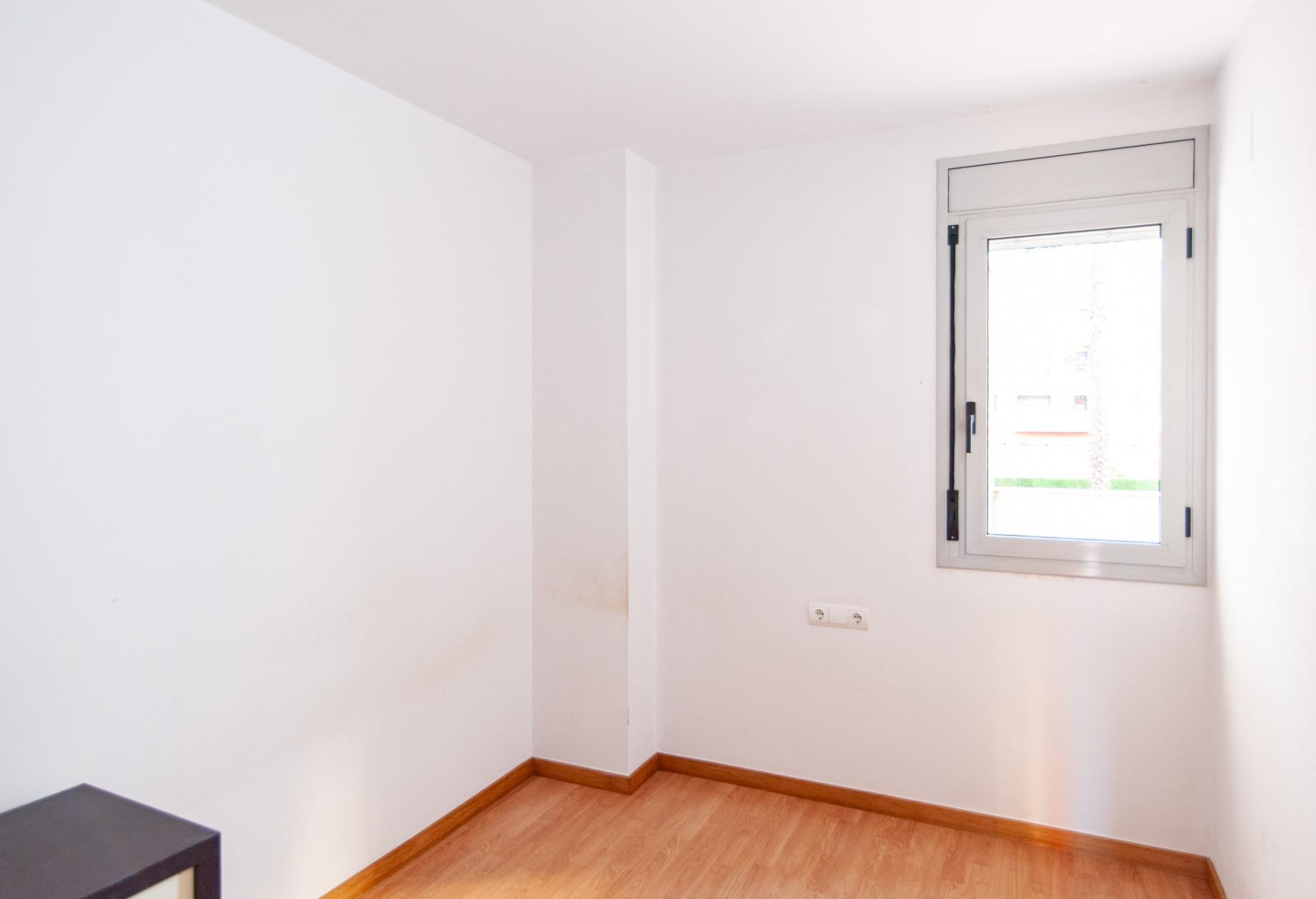 La vivienda dispone de dos habitaciones adicionales, ambas con armarios empotrados. Una de ellas es exterior, con ventana, y la otra tiene acceso al patio, con vistas a la zona de la piscina comunitaria, un entorno tranquilo y agradable.