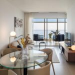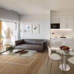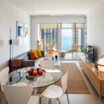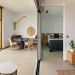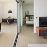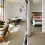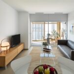 Asimismo, los apartamentos también disponen de una moderna cocina equipada con encimera, fregadero de acero inoxidable, microondas, lavavajillas, vitrocerámica y frigorífico, todos ellos de primeras marcas.
