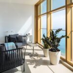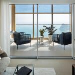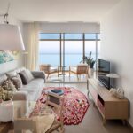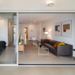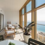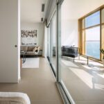 El salón es amplio, acogedor y luminoso durante todo el día, con vistas panorámicas al mar. Dispone de grandes ventanales para el máximo confort, con cerramientos de calidad contrastada.