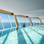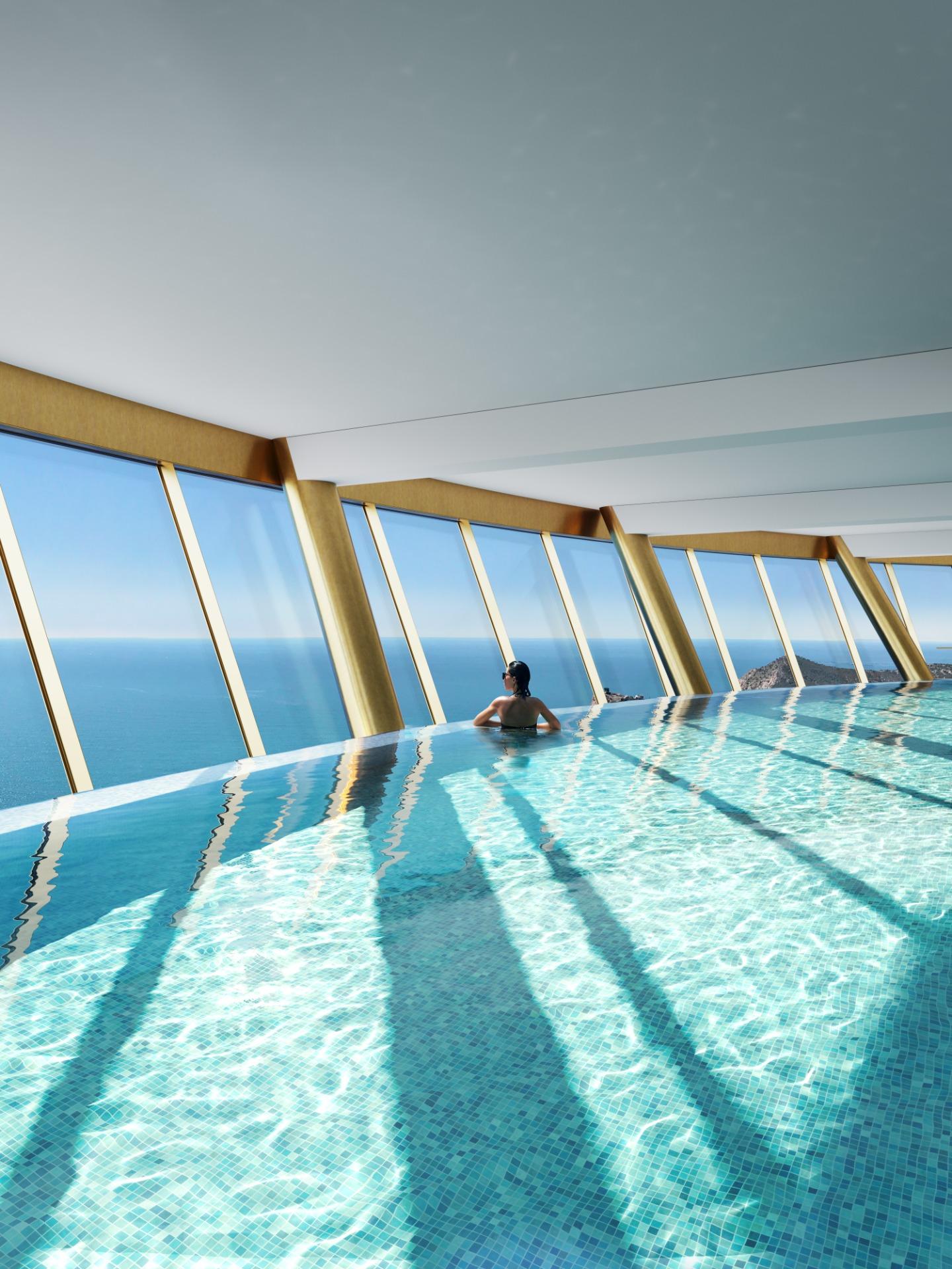 En la planta 46 encontramos un espacio único para el relax, con las mejores vistas de toda la Comunidad Valenciana. Es en esta planta donde disfrutamos de la sala de fitness, una espectacular piscina climatizada, salas de masajes y sauna.