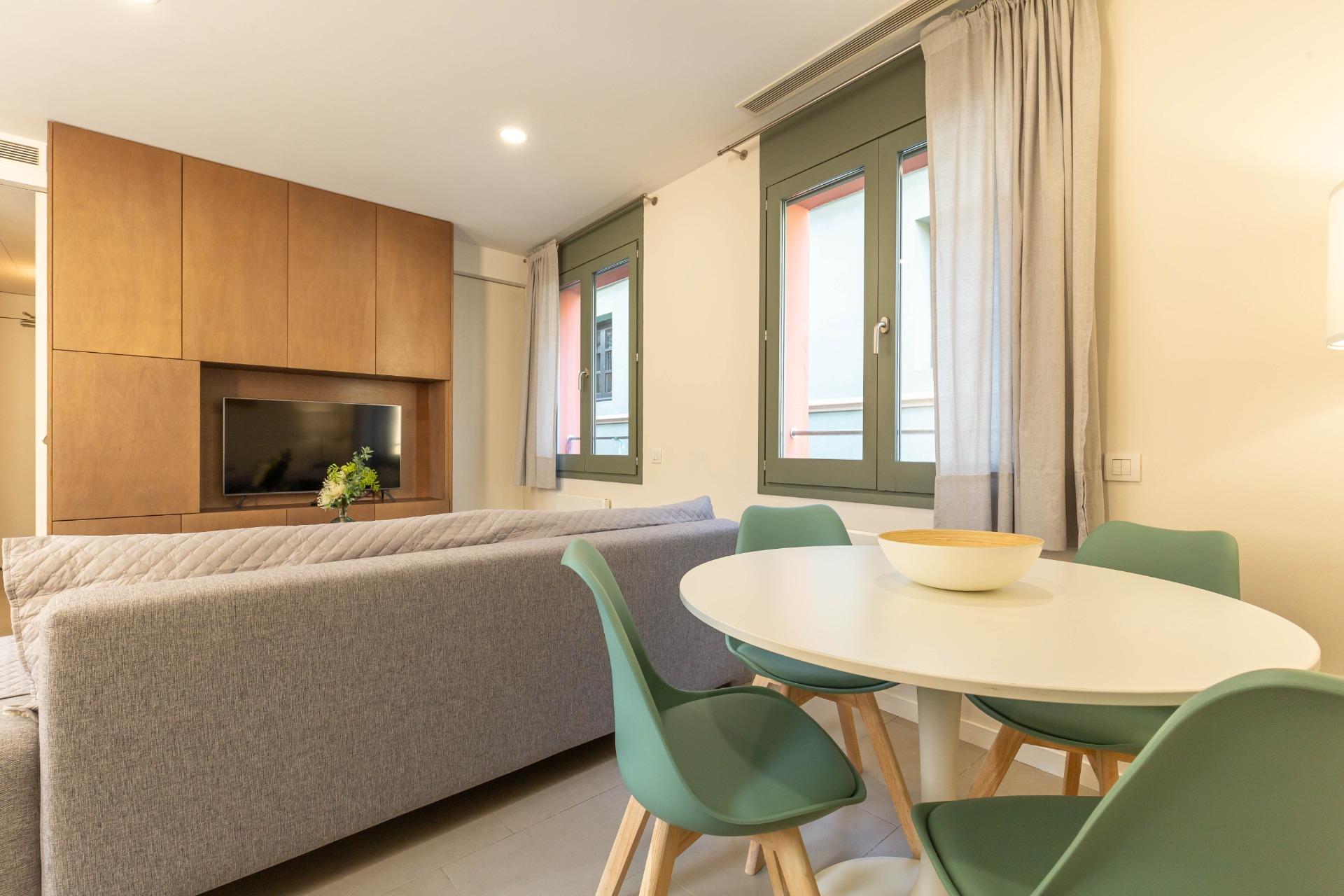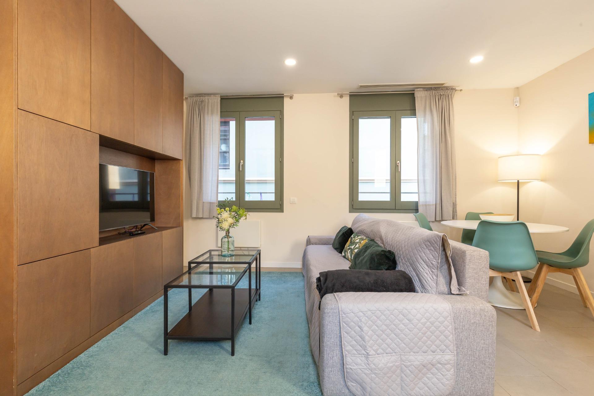 Ampli apartament d’una habitació situat en una de les millors zones de Barcelona.