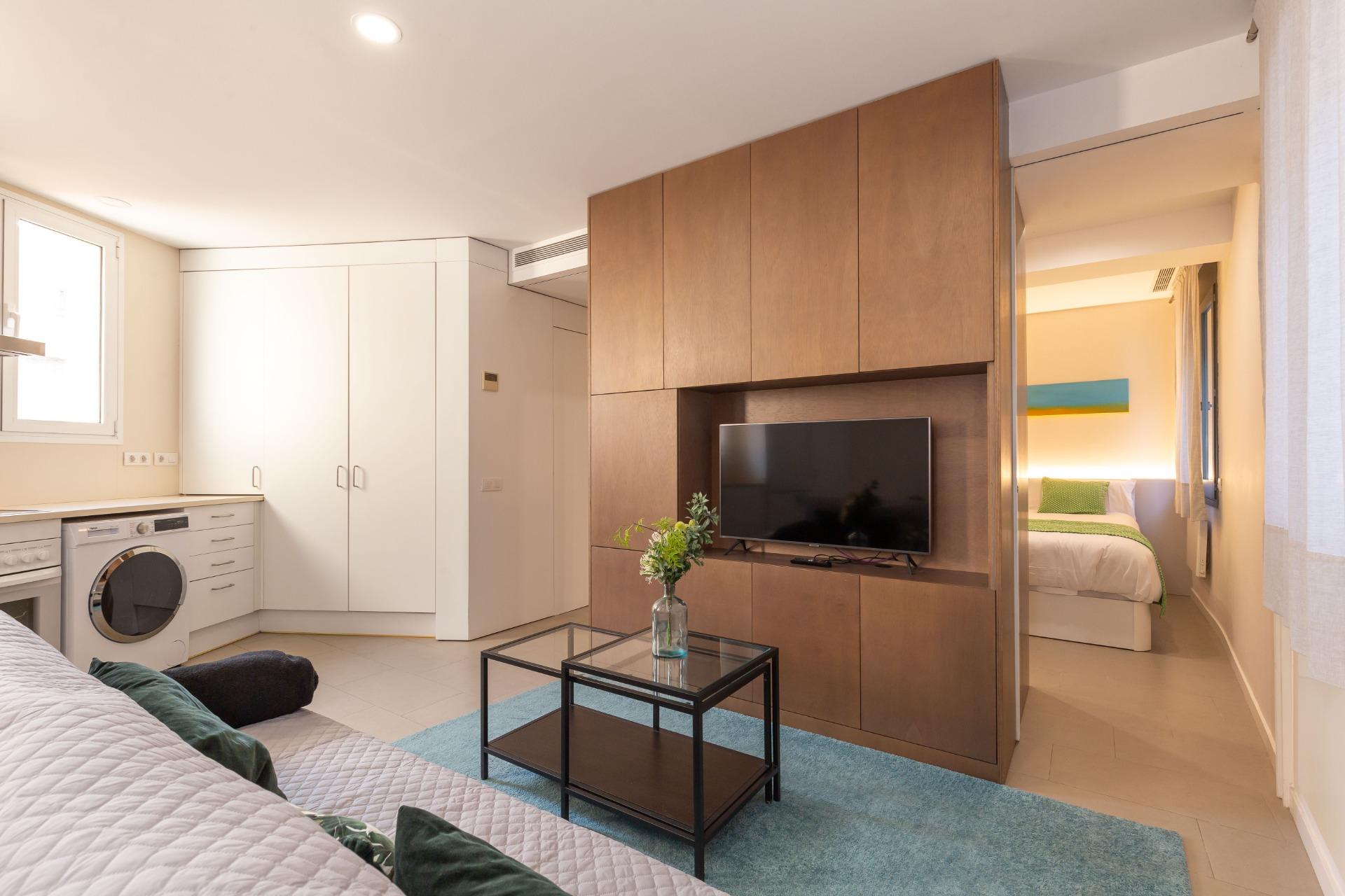 L’apartament compta amb tot el necessari per gaudir de la teva estada:~- Dormitori principal equipat amb llit de matrimoni i armari per a la teva comoditat.~- Saló amb sofà, TV de pantalla plana, zona de menjador, connexió Wi-Fi gratuïta, aire condicionat i calefacció.~- Cuina moderna i integrada equipada amb tot el necessari (cafetera, tetera, microones, forn, fogons i més).~- Bany complet amb dutxa.