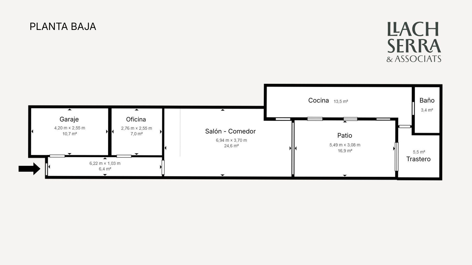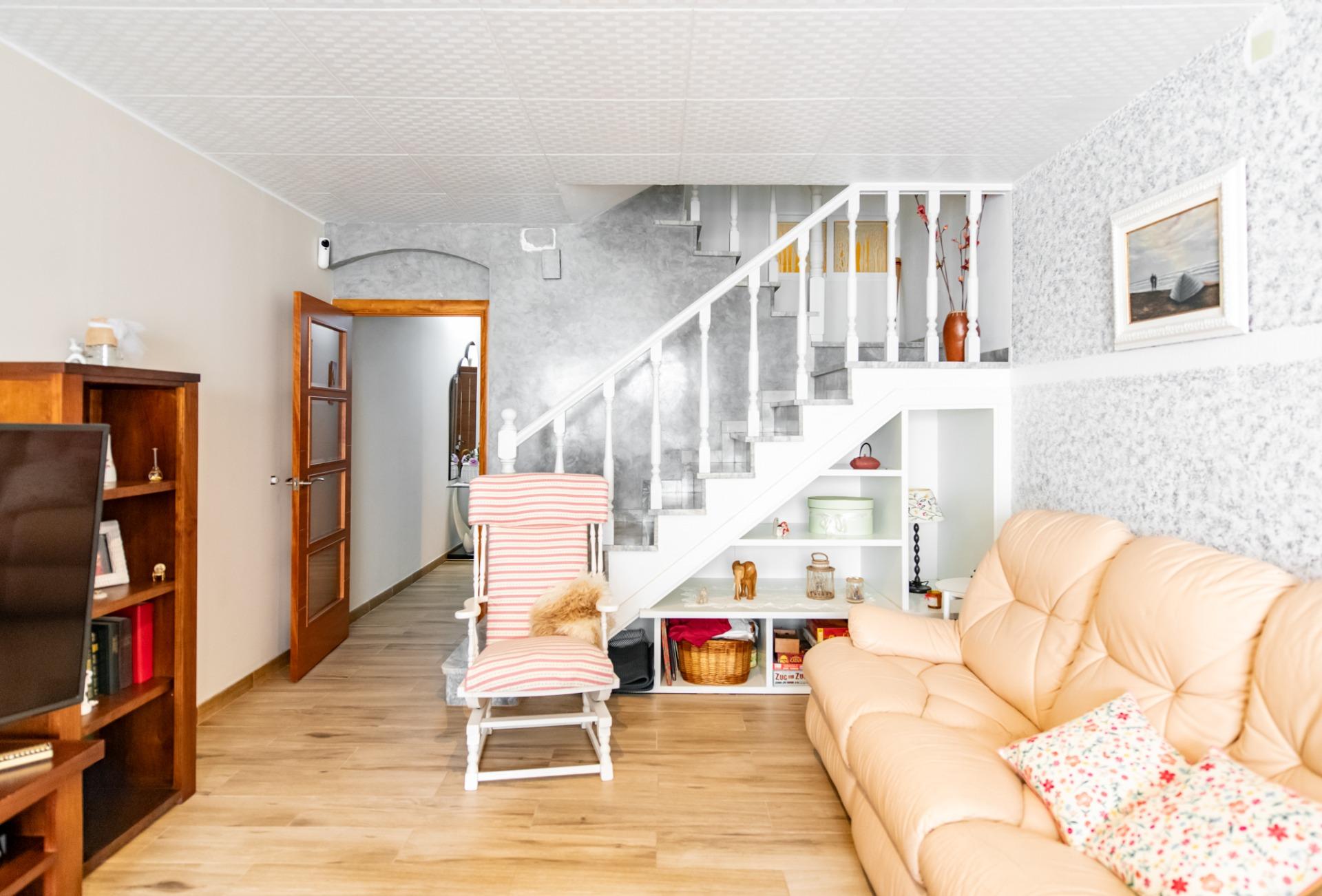 A la planta baixa trobem l’accés a l’habitatge, on s’ubica un garatge amb capacitat per a un vehicle, un espai addicional actualment destinat a oficina, un saló-menjador on se situa l’escala d’accés a la planta superior, i una cuina independent, elèctrica i equipada. Al costat de la cuina es troba la zona de safareig, aportant funcionalitat al dia a dia.