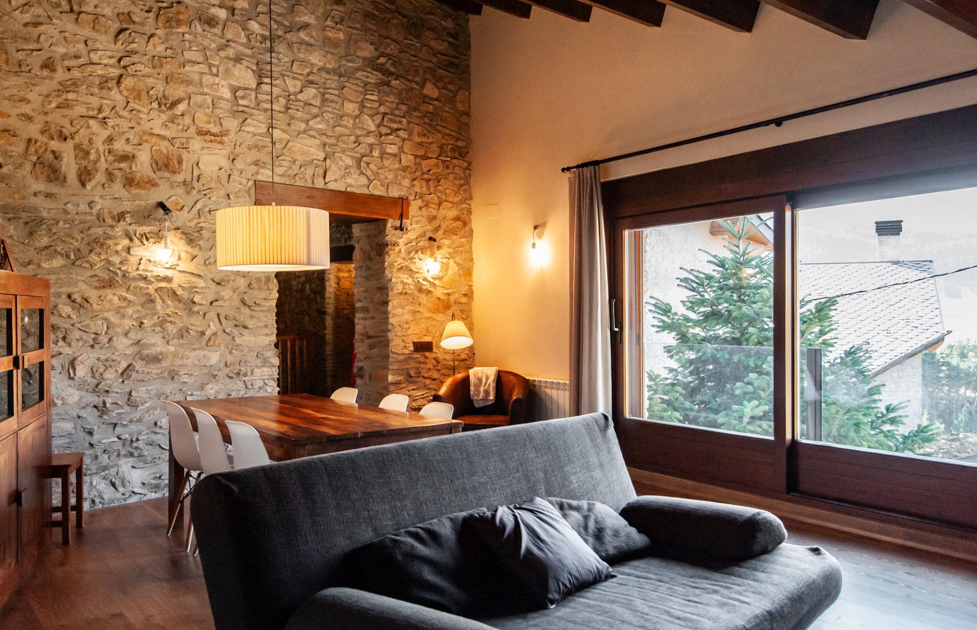 Al tranquil nucli de Monrós, al cor de La Vall Fosca (Lleida), es troba aquesta acollidora casa de muntanya d’aproximadament 325 m² construïts, distribuïda en tres plantes i reformada amb molta cura, combinant l’encant rústic de les construccions de muntanya amb elements més moderns i funcionals.