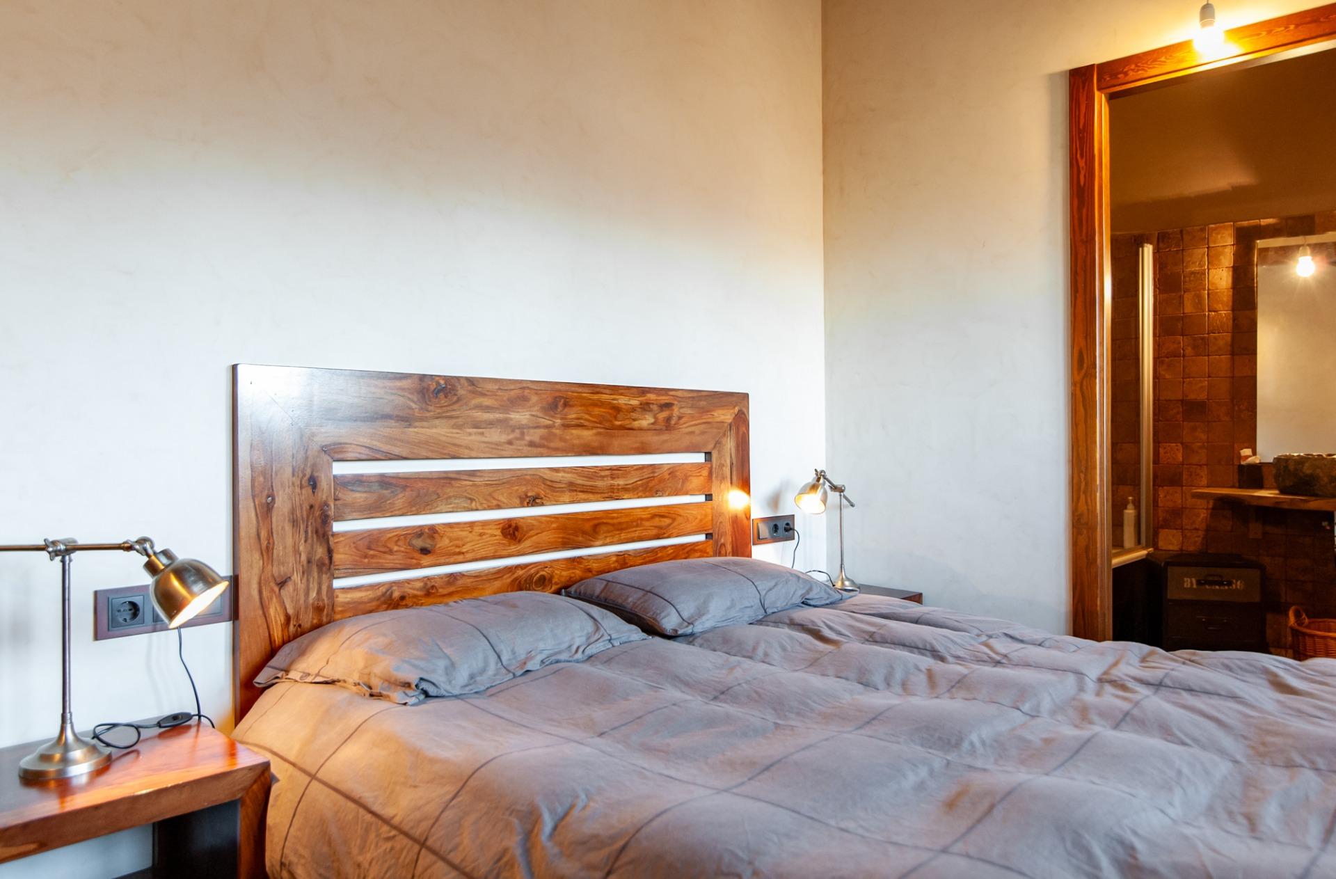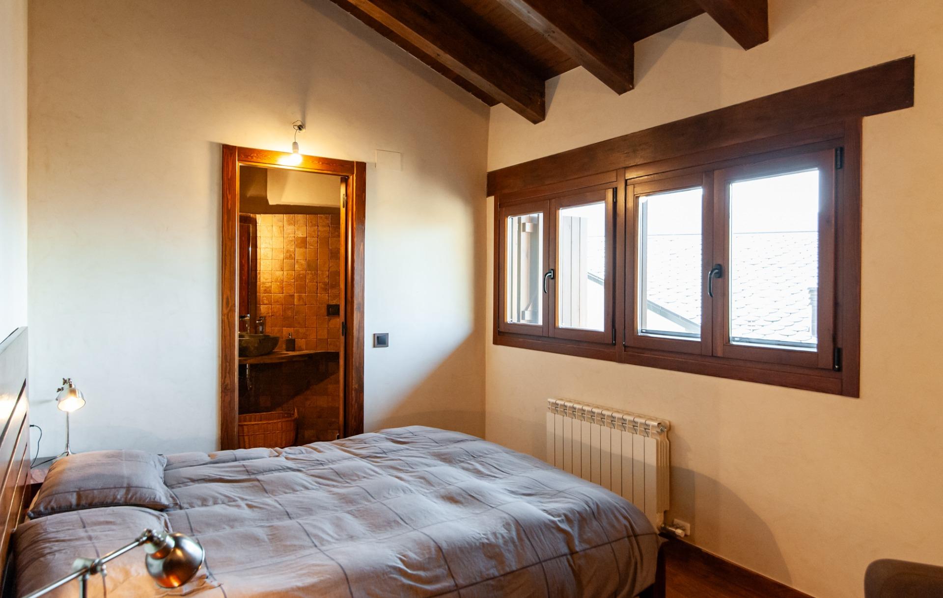 La primera planta acull el nucli principal de la casa. Destaca el saló-menjador, ampli i lluminós, amb sostre de bigues de fusta, gran finestral amb vistes a la muntanya i xemeneia, cosa que reforça el seu ambient càlid i acollidor. En aquesta planta hi ha també una cuina independent i ben equipada, un segon bany complet amb dutxa i dues habitacions més: una individual i una suite doble amb armari encastat i bany privat amb banyera. Totes dues habitacions tenen una bona il·luminació natural, especialment la suite, que ofereix una vista privilegiada sobre l'entorn.