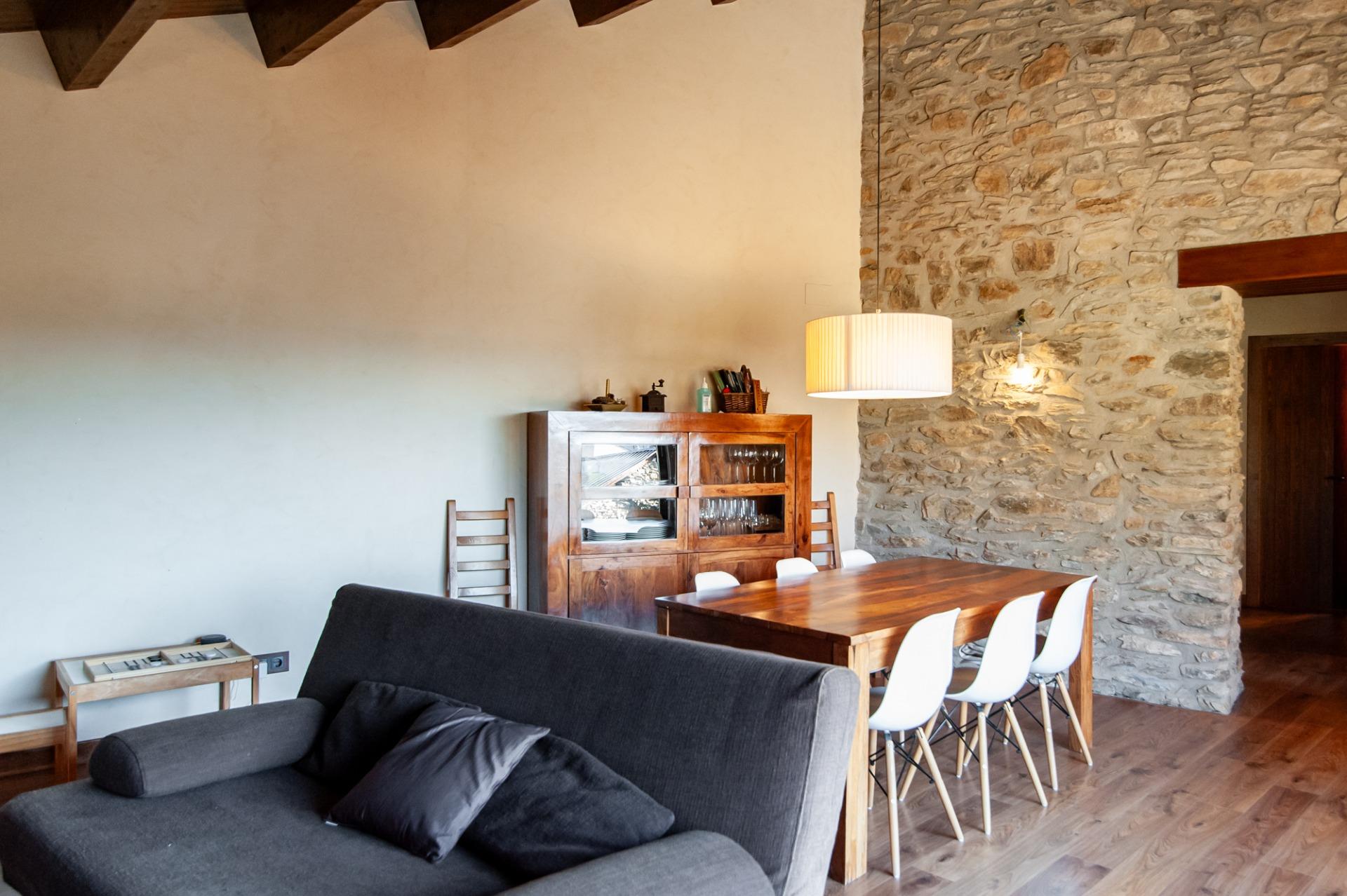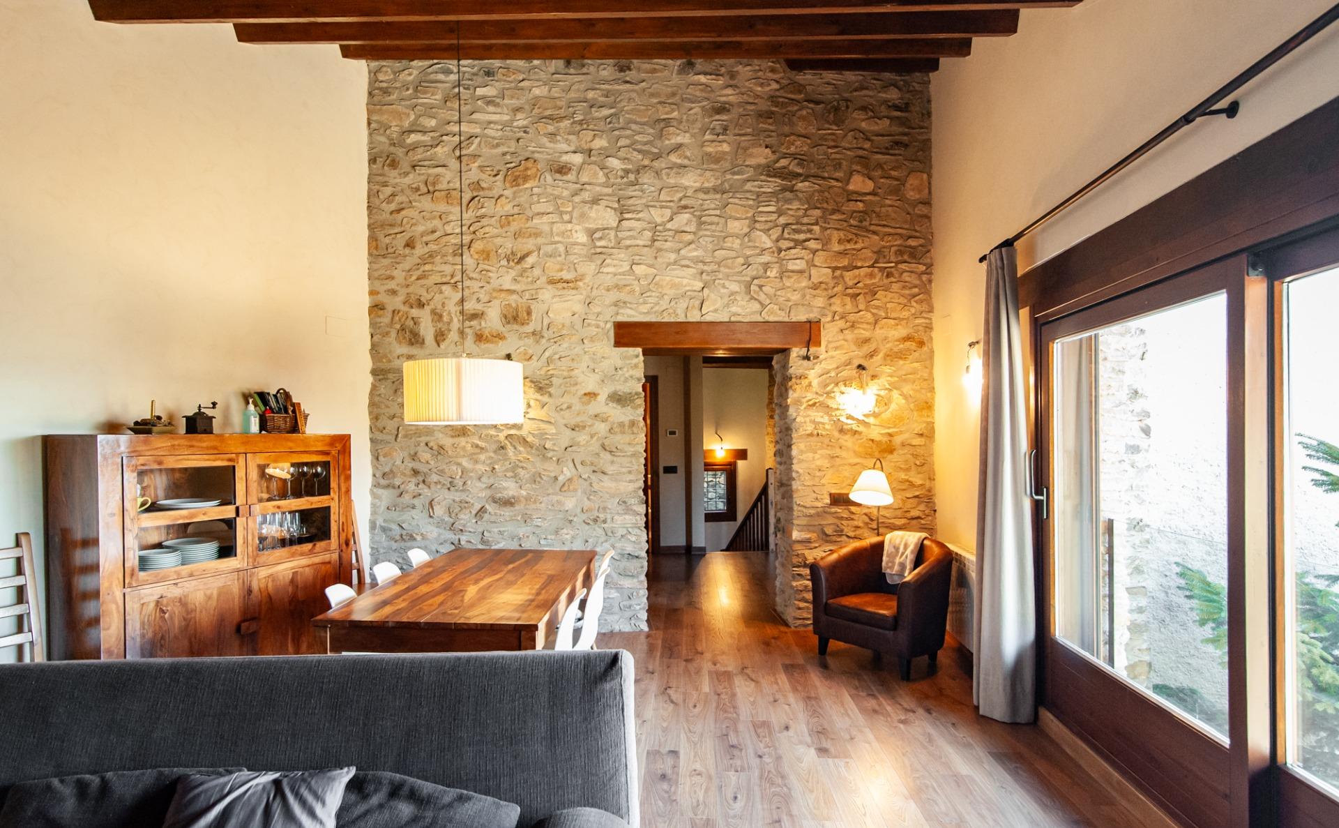 Al nucli de Monrós, a la Vall Fosca (Lleida), s'hi ubica aquesta acollidora casa de muntanya d'uns 325 m² construïts, distribuïda en tres plantes i reformada amb gust, combinant l'estil rústic tradicional amb elements moderns que aporten confort i funcionalitat.