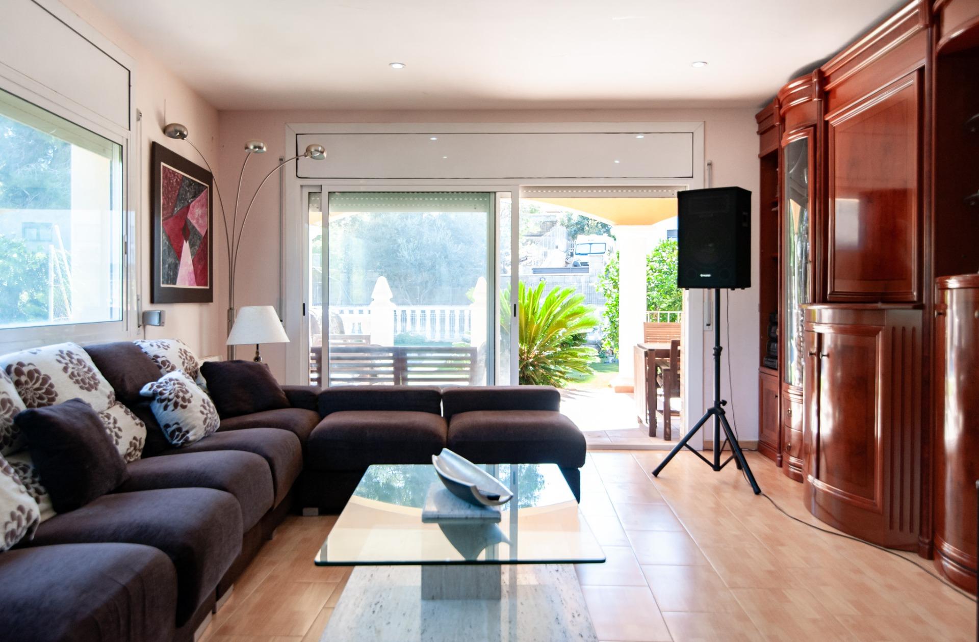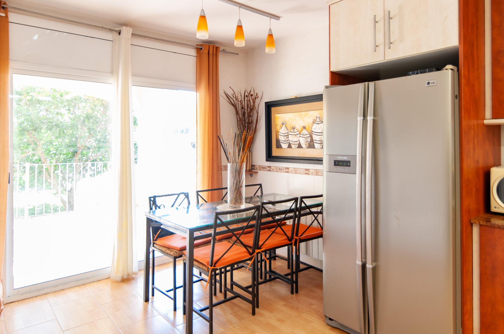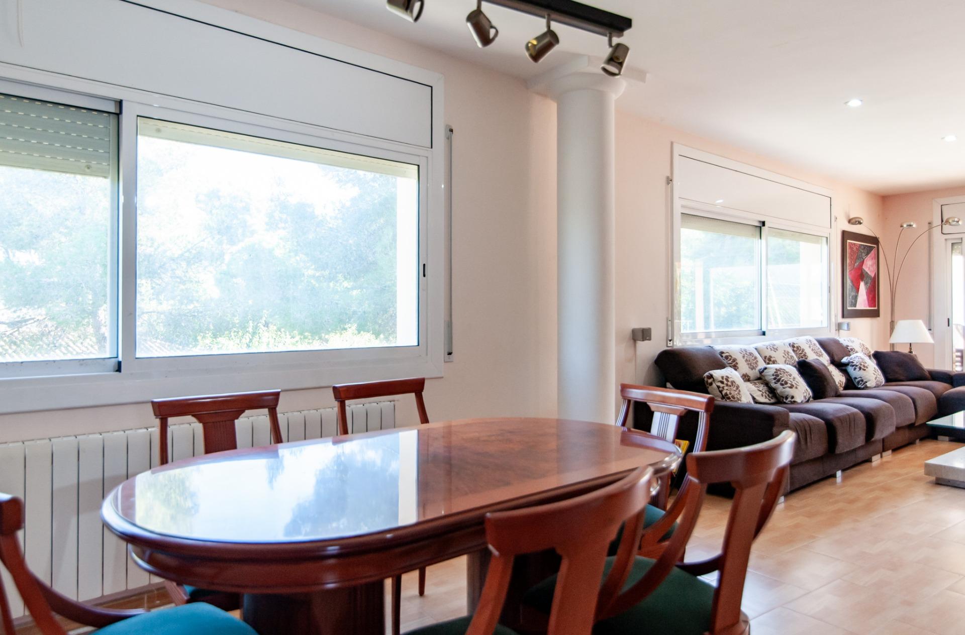 A la planta baixa, hi trobem un espaiós saló menjador diàfan, amb grans finestrals que omplen de llum natural tota l’estança i amb accés directe al porxo cobert, una zona ideal per gaudir de menjars a l’aire lliure o de moments de relax al costat de la piscina.~La cuina independent, completament equipada, és àmplia i funcional, amb illa central i espai per a taula, perfecta per al dia a dia o per a celebracions familiars. També té accés directe al porxo, aportant comoditat i fluïdesa entre l’interior i l’exterior.~En aquesta mateixa planta hi trobem una habitació doble i un bany complet amb dutxa, que converteixen la planta en un espai totalment funcional.~A la part posterior, hi ha un balcó amb vistes al terreny del darrere, ideal com a zona auxiliar o per gaudir de l’entorn.