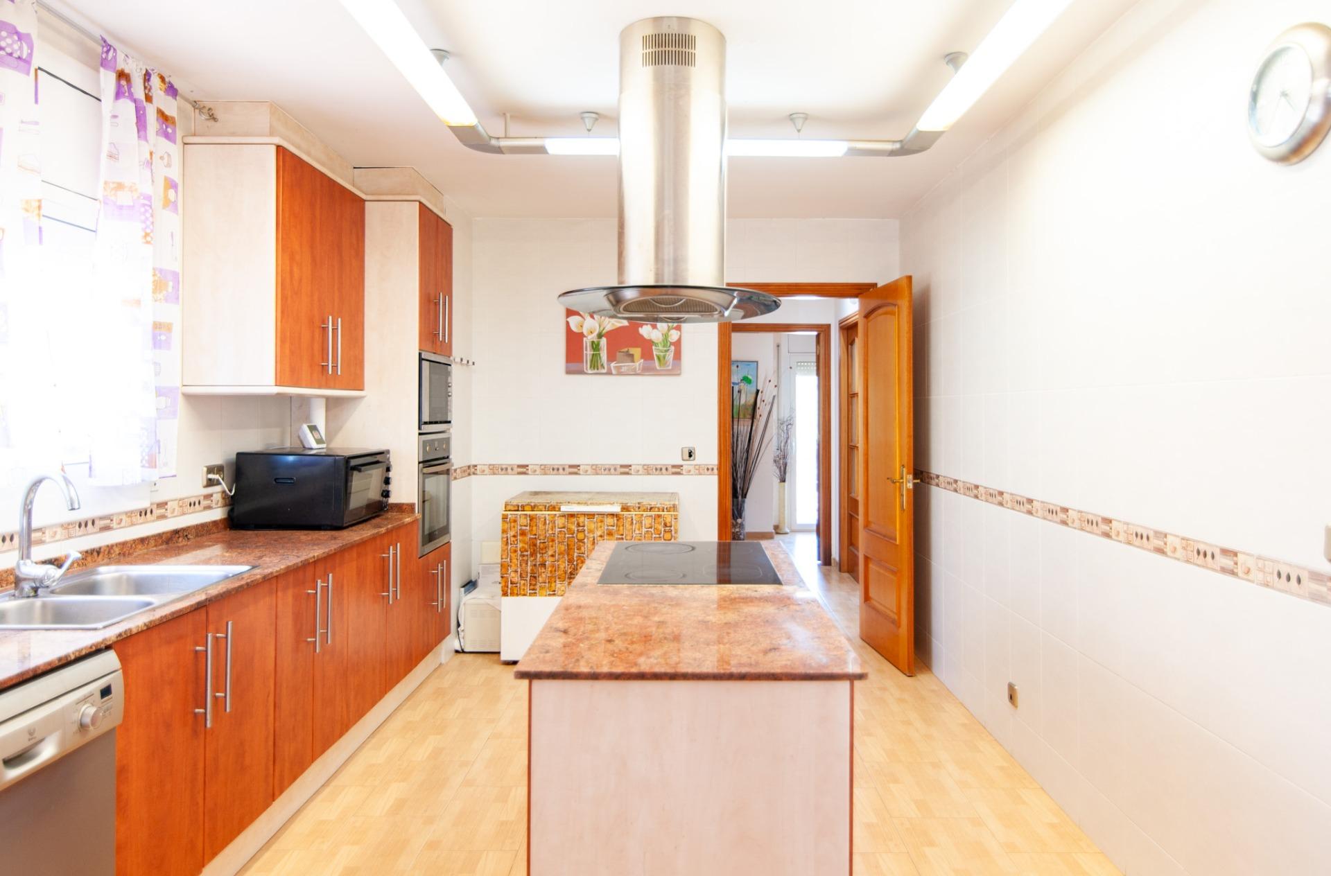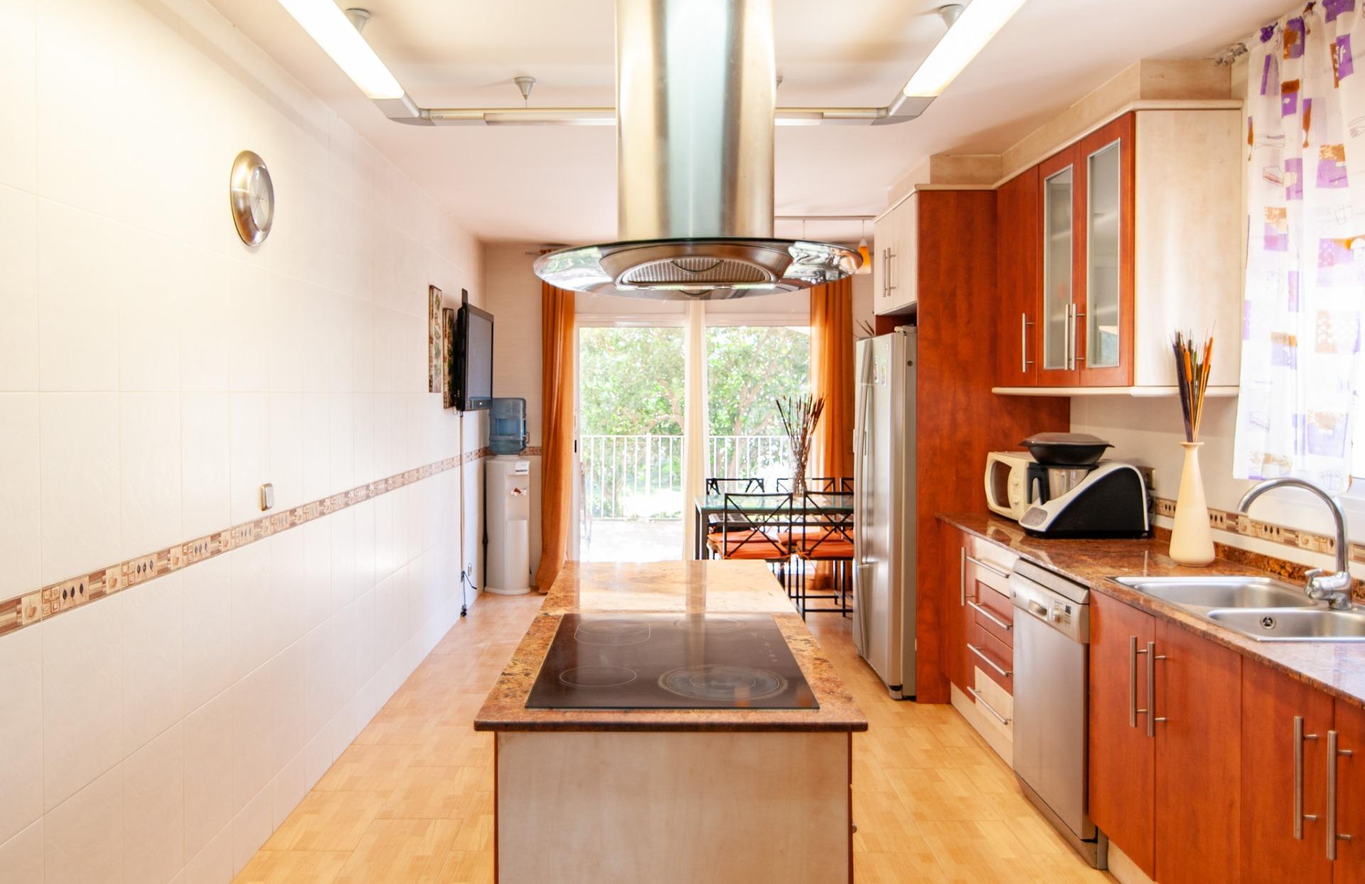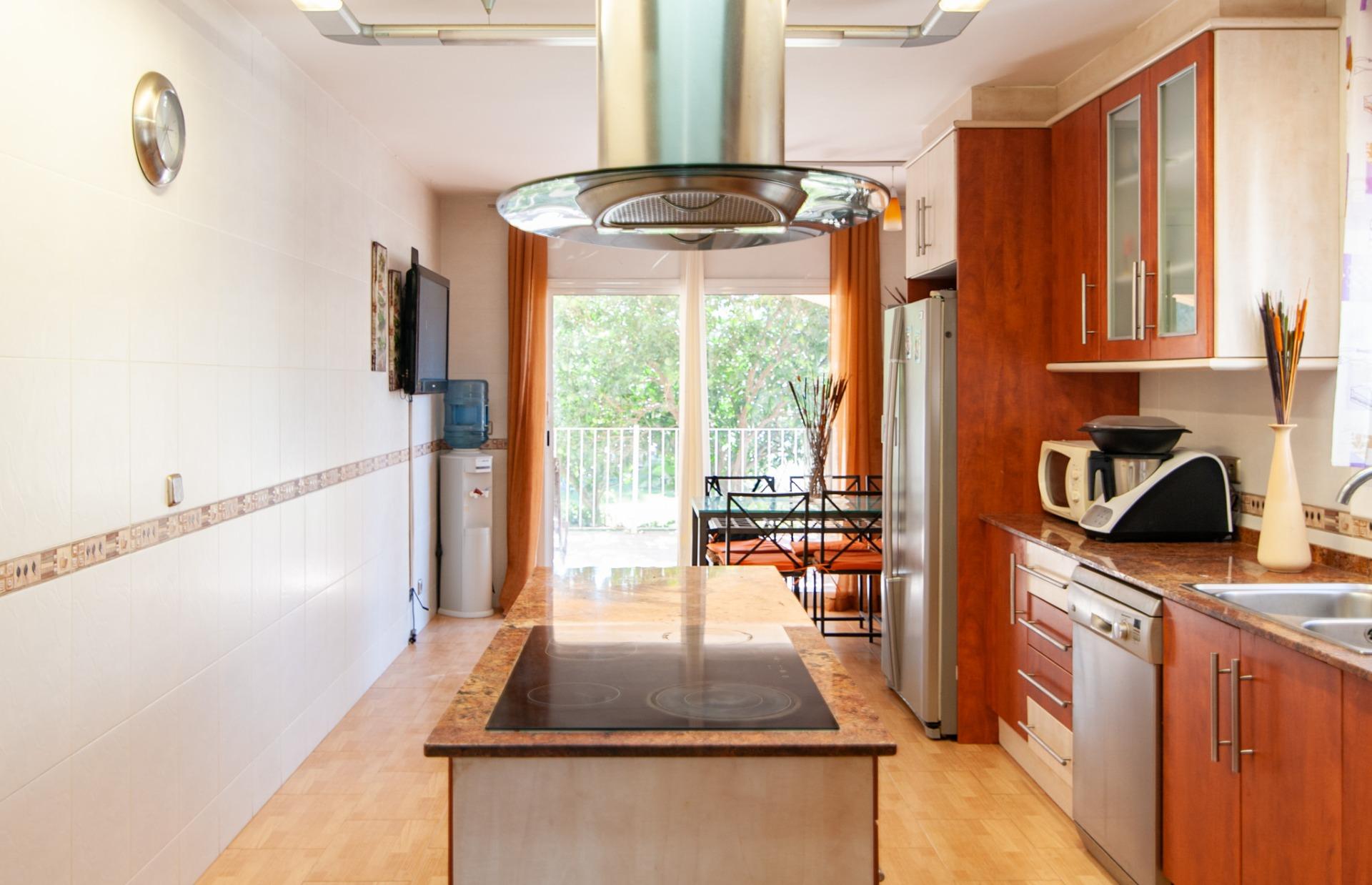 A la planta baixa, hi trobem un espaiós saló menjador diàfan, amb grans finestrals que omplen de llum natural tota l’estança i amb accés directe al porxo cobert, una zona ideal per gaudir de menjars a l’aire lliure o de moments de relax al costat de la piscina.~La cuina independent, completament equipada, és àmplia i funcional, amb illa central i espai per a taula, perfecta per al dia a dia o per a celebracions familiars. També té accés directe al porxo, aportant comoditat i fluïdesa entre l’interior i l’exterior.~En aquesta mateixa planta hi trobem una habitació doble i un bany complet amb dutxa, que converteixen la planta en un espai totalment funcional.~A la part posterior, hi ha un balcó amb vistes al terreny del darrere, ideal com a zona auxiliar o per gaudir de l’entorn.