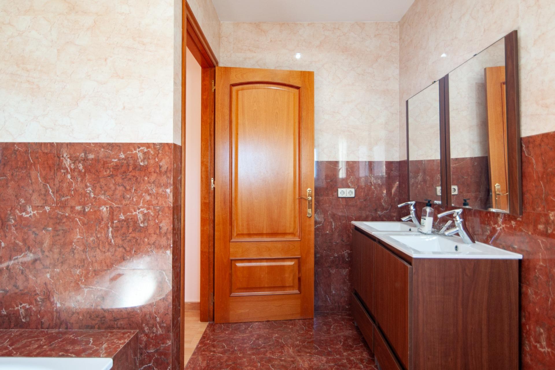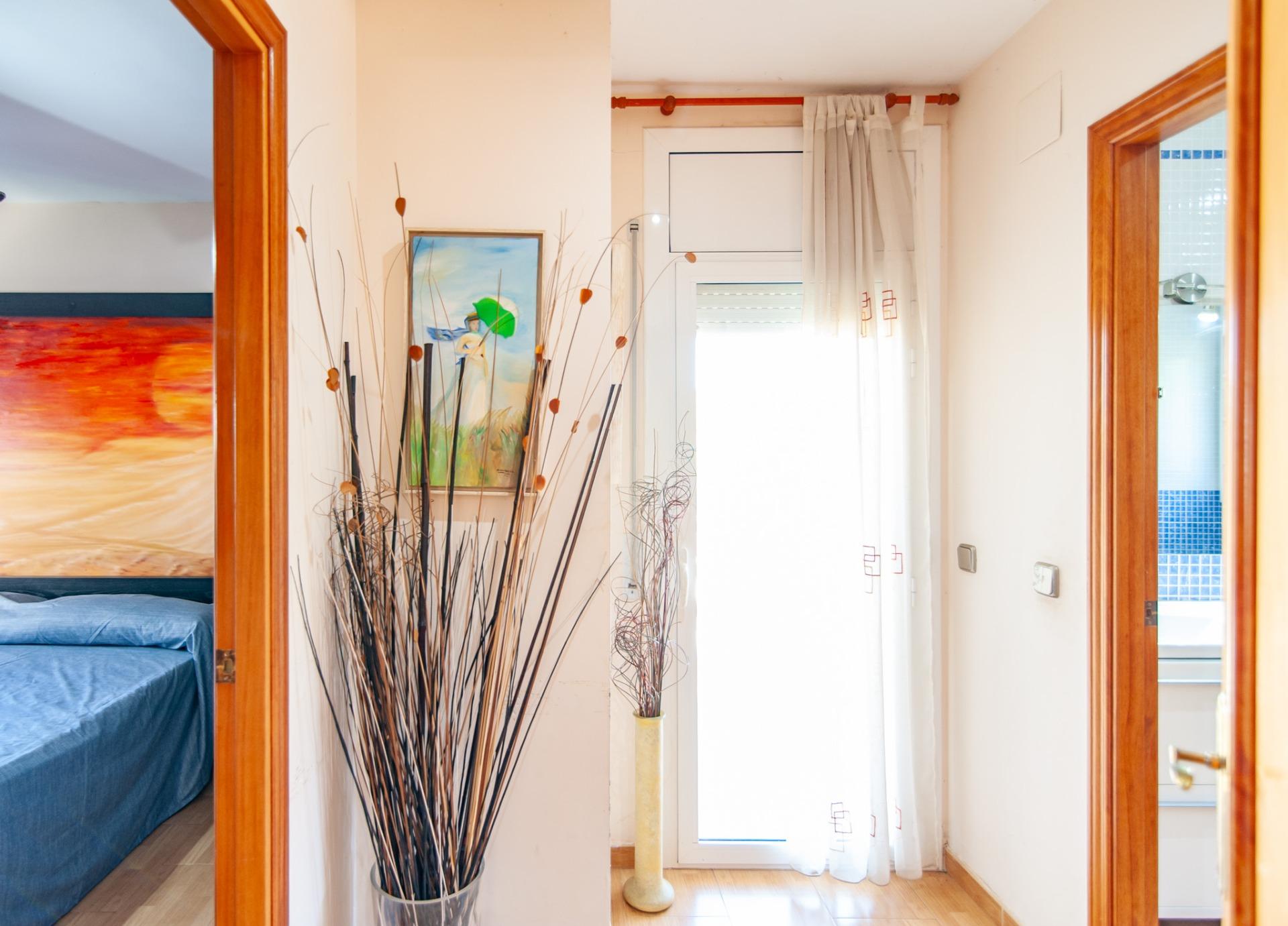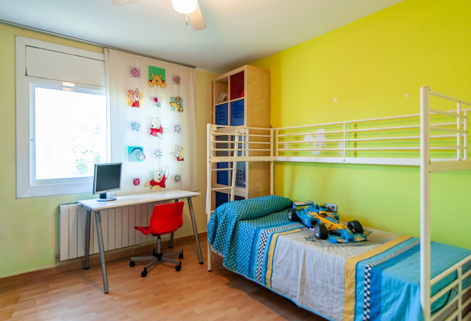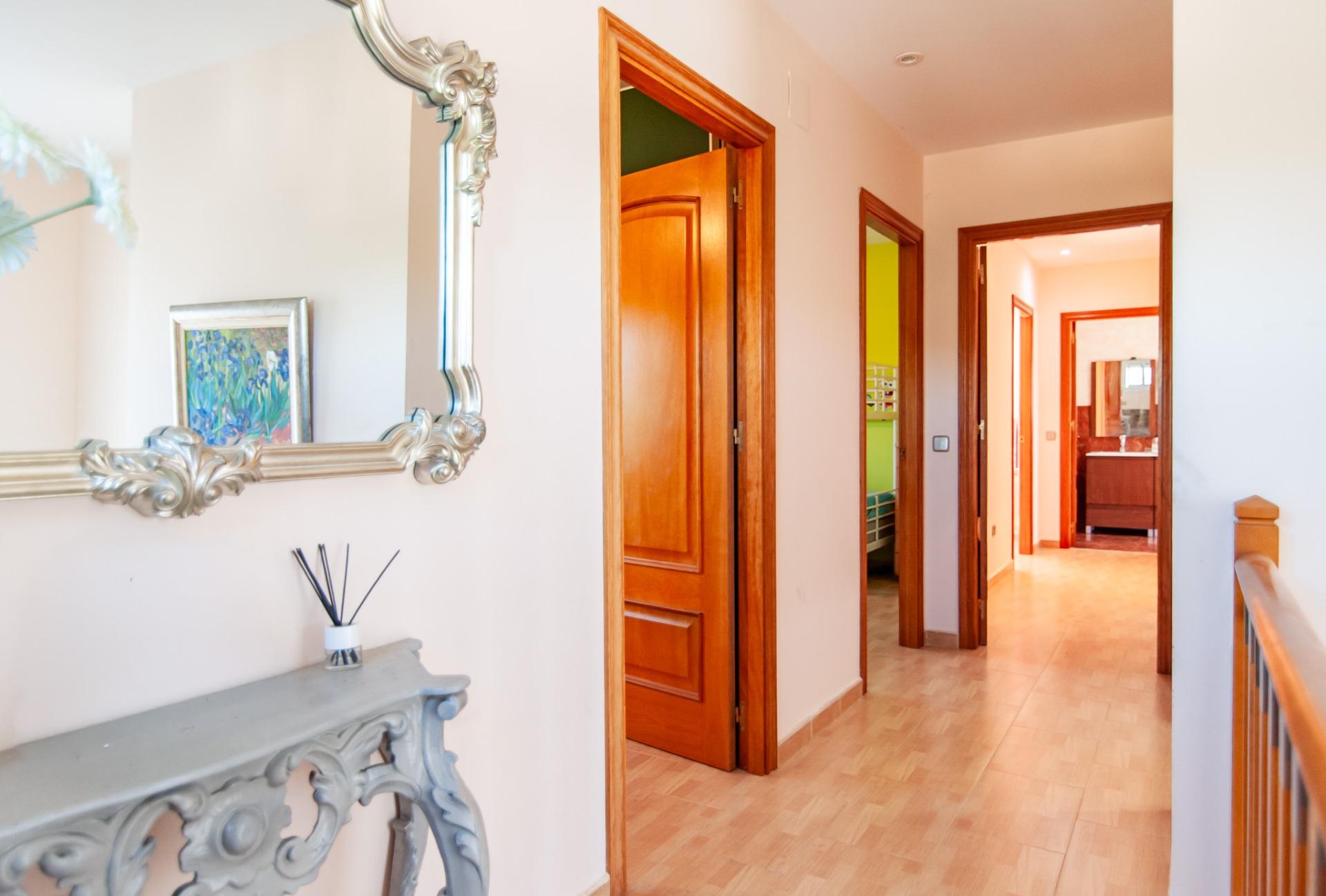 A la planta superior hi ha la zona de nit, composta per dues habitacions lluminoses, actualment individuals però amb prou espai per a llits dobles, un bany complet amb banyera i una suite principal amb vestidor, ampli bany amb banyera i accés directe a una terrassa privada orientada al sud, des de la qual es pot gaudir d’una llum natural magnífica durant tot el dia.