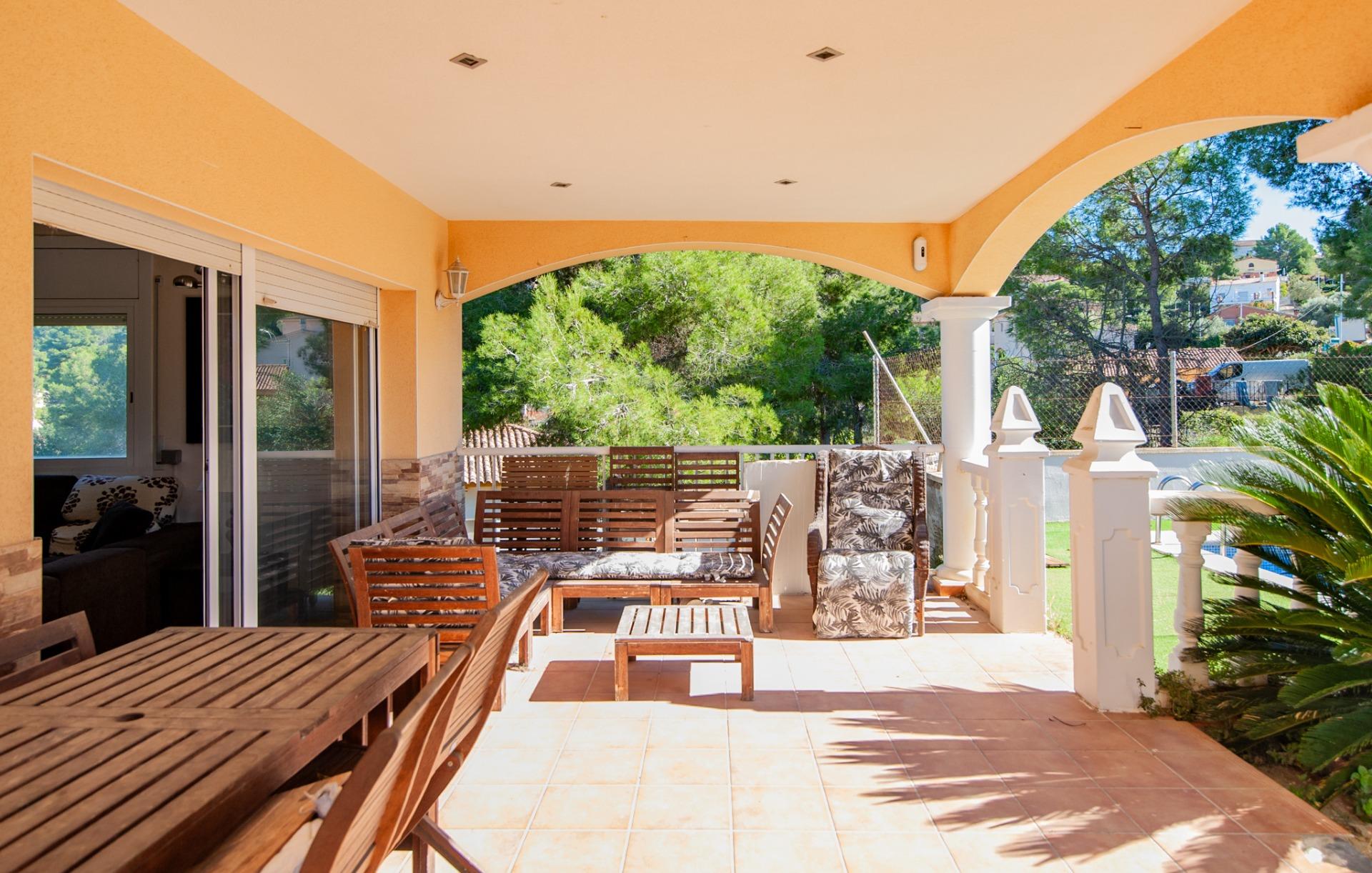L’exterior és un dels grans atractius de la propietat: una zona enjardinada amb piscina privada, porxo cobert, espai de barbacoa i un ampli terrè posterior sense edificar, ideal per donar-li múltiples usos. Tot el perímetre de la parcel·la està tancat amb vallat, garantint privacitat i seguretat en un entorn molt tranquil.